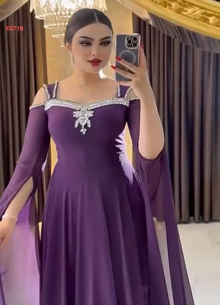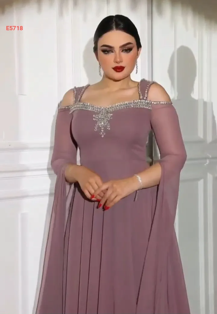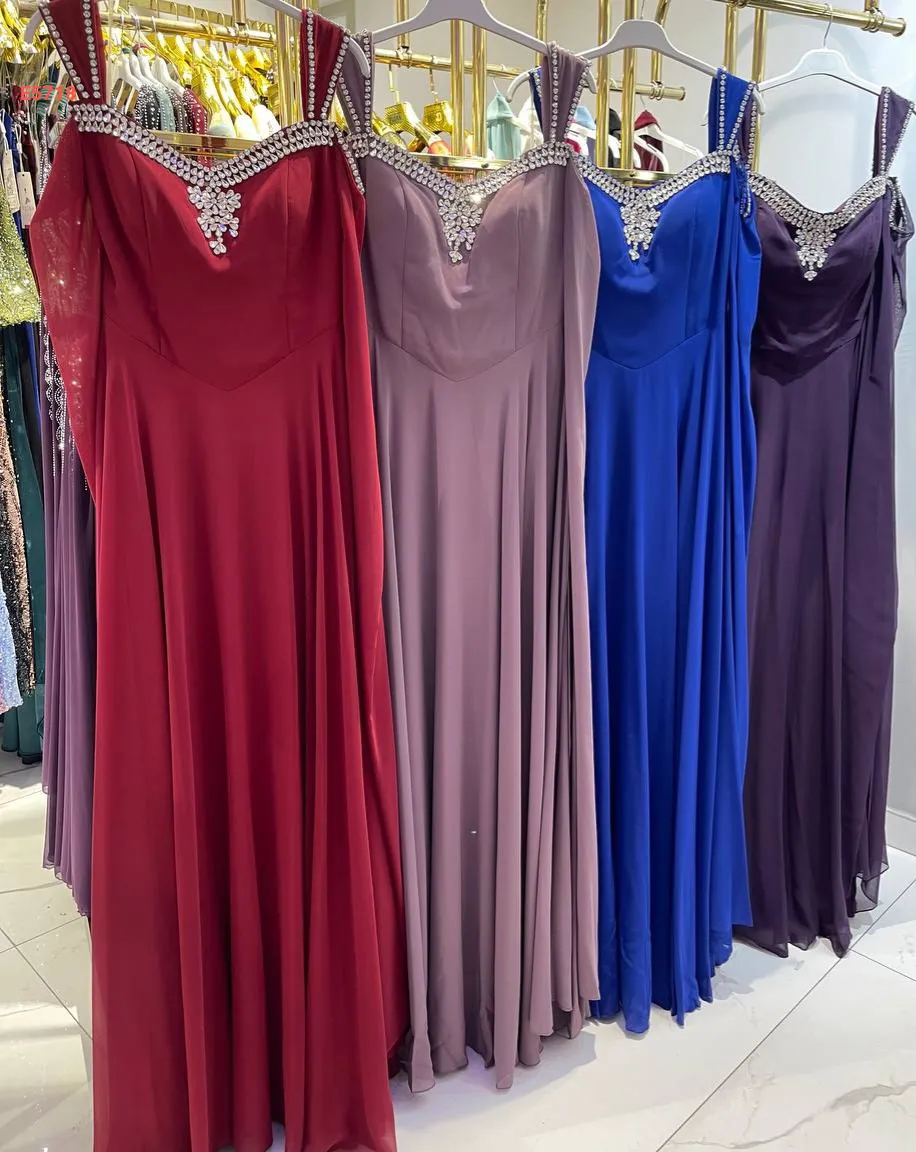 فستان سهرة شيفون مزين أحجار