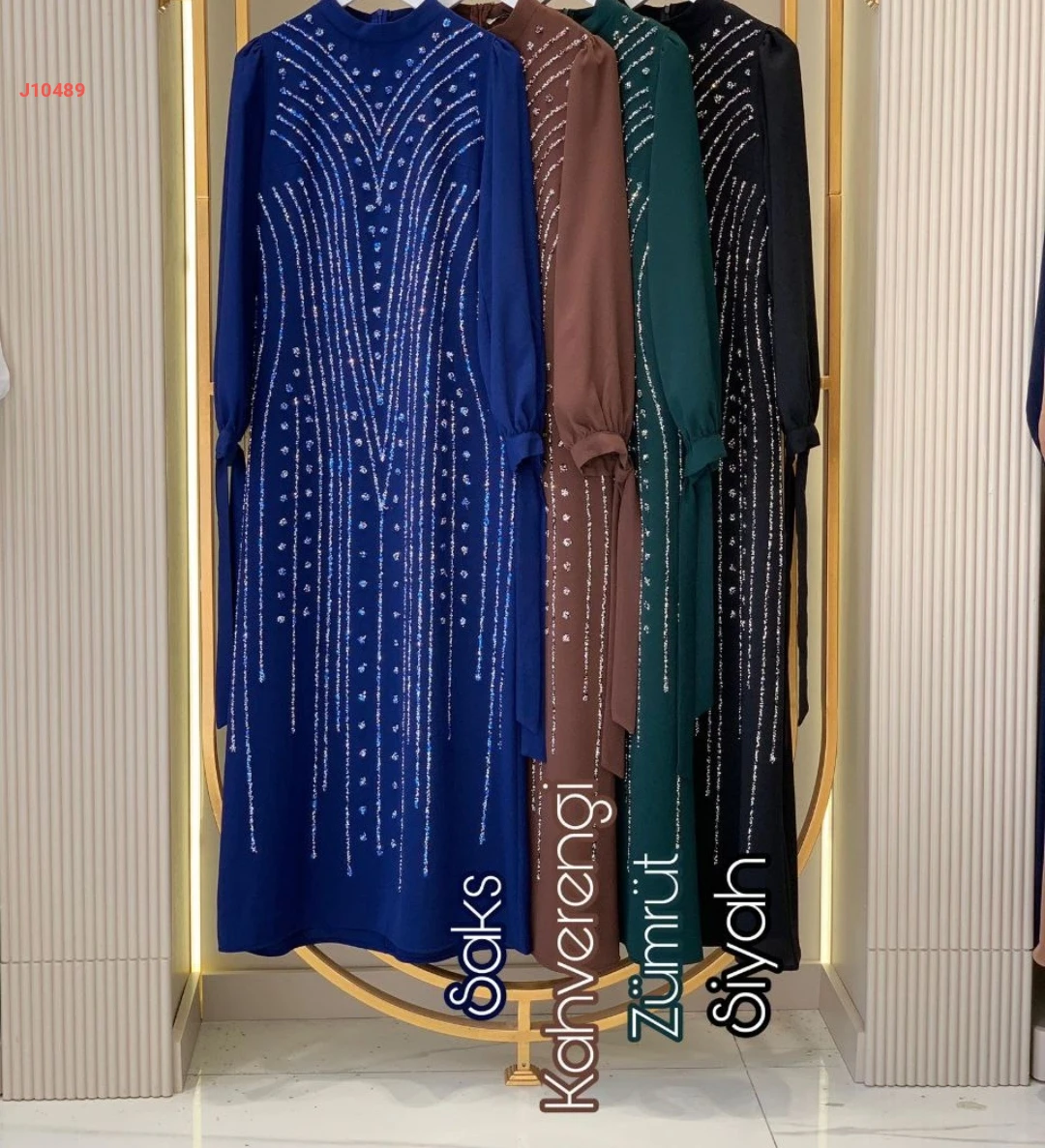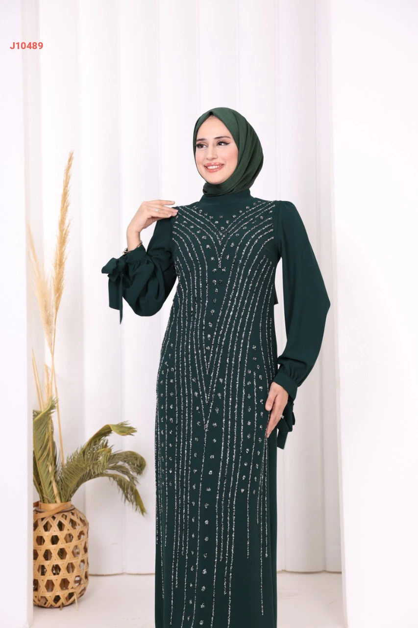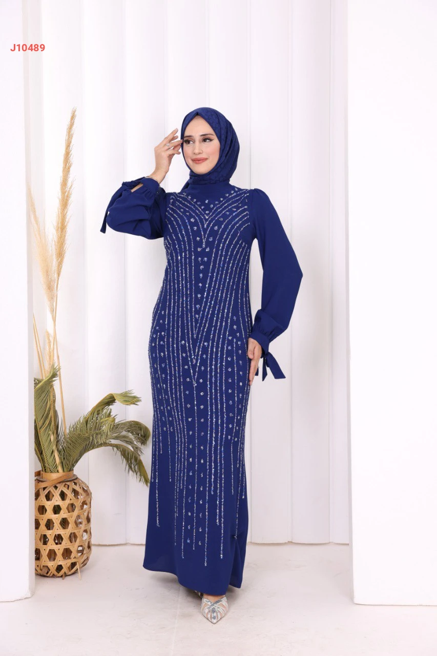 فستان سواريه محجبات تطريز شك بياقة مرتفعة