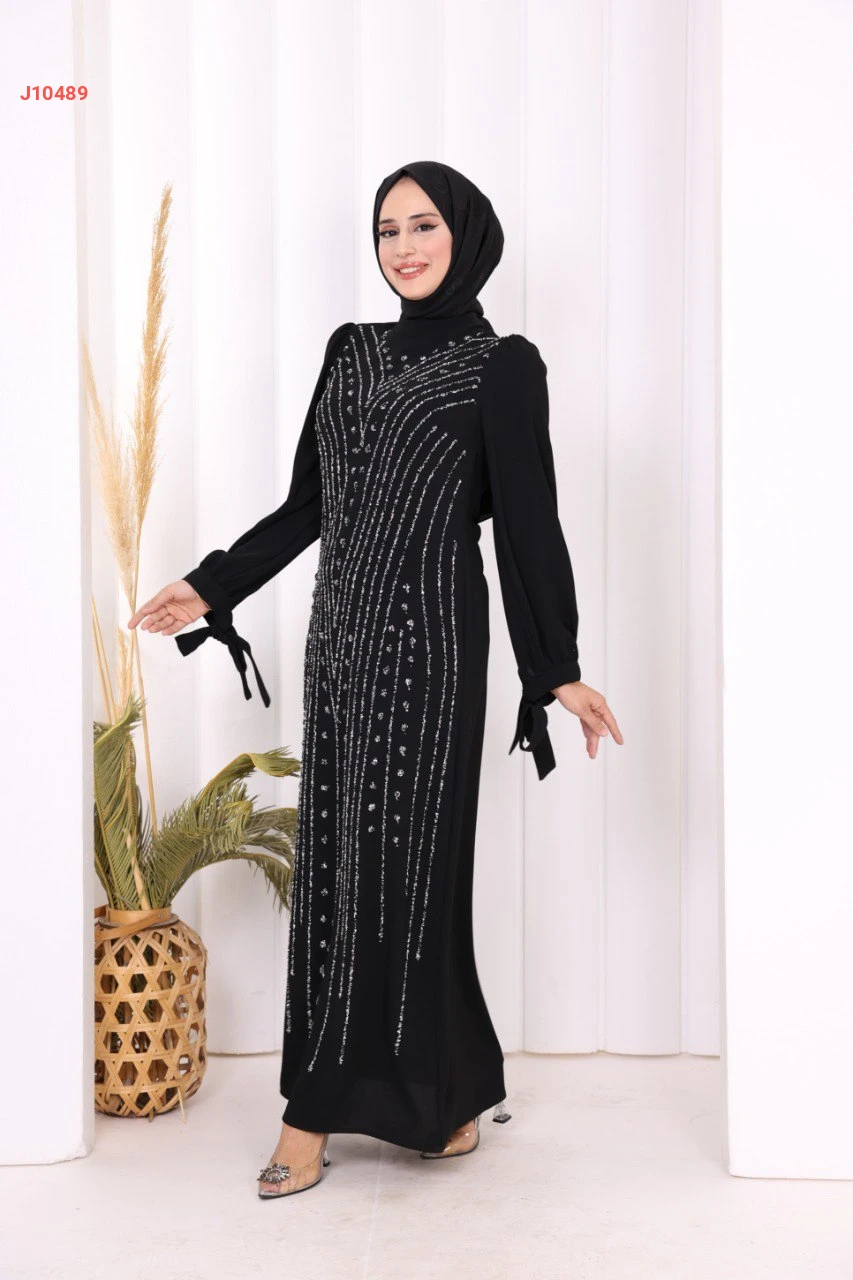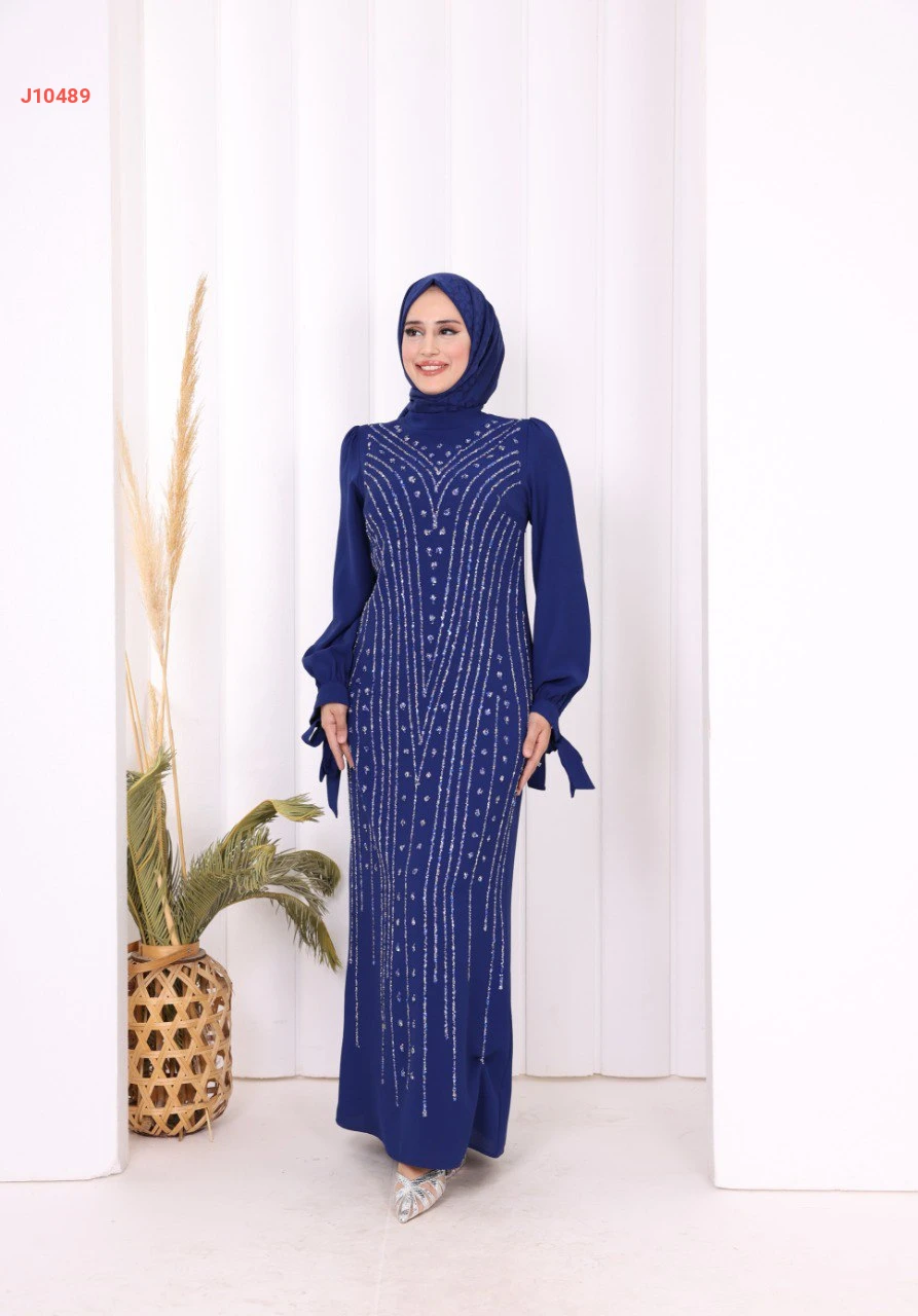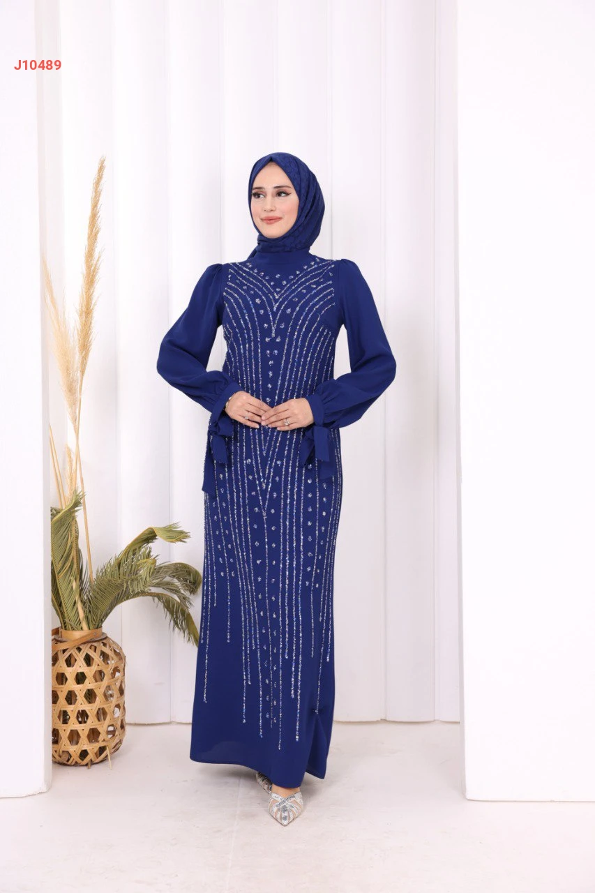 فستان سواريه محجبات تطريز شك بياقة مرتفعة