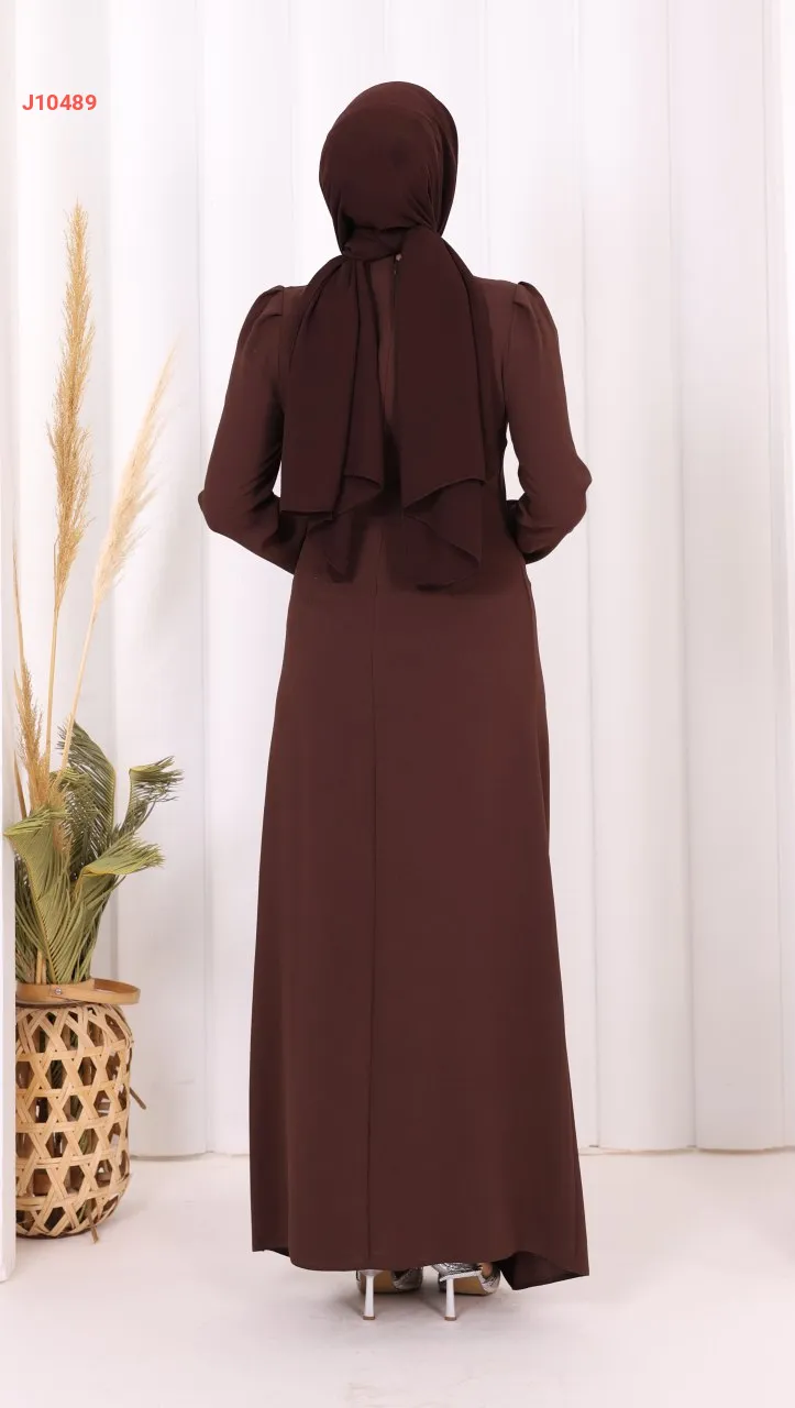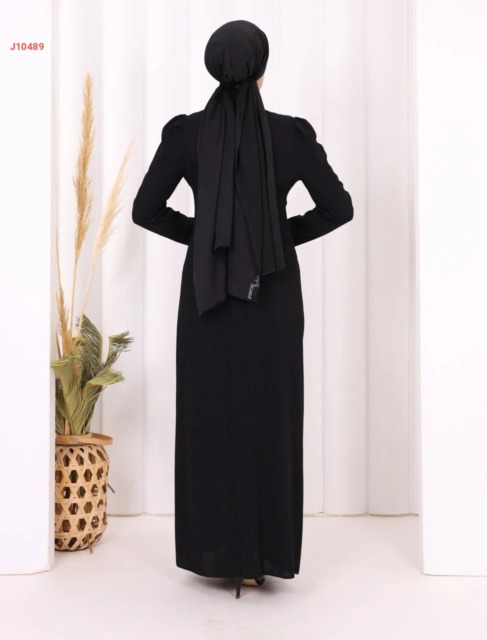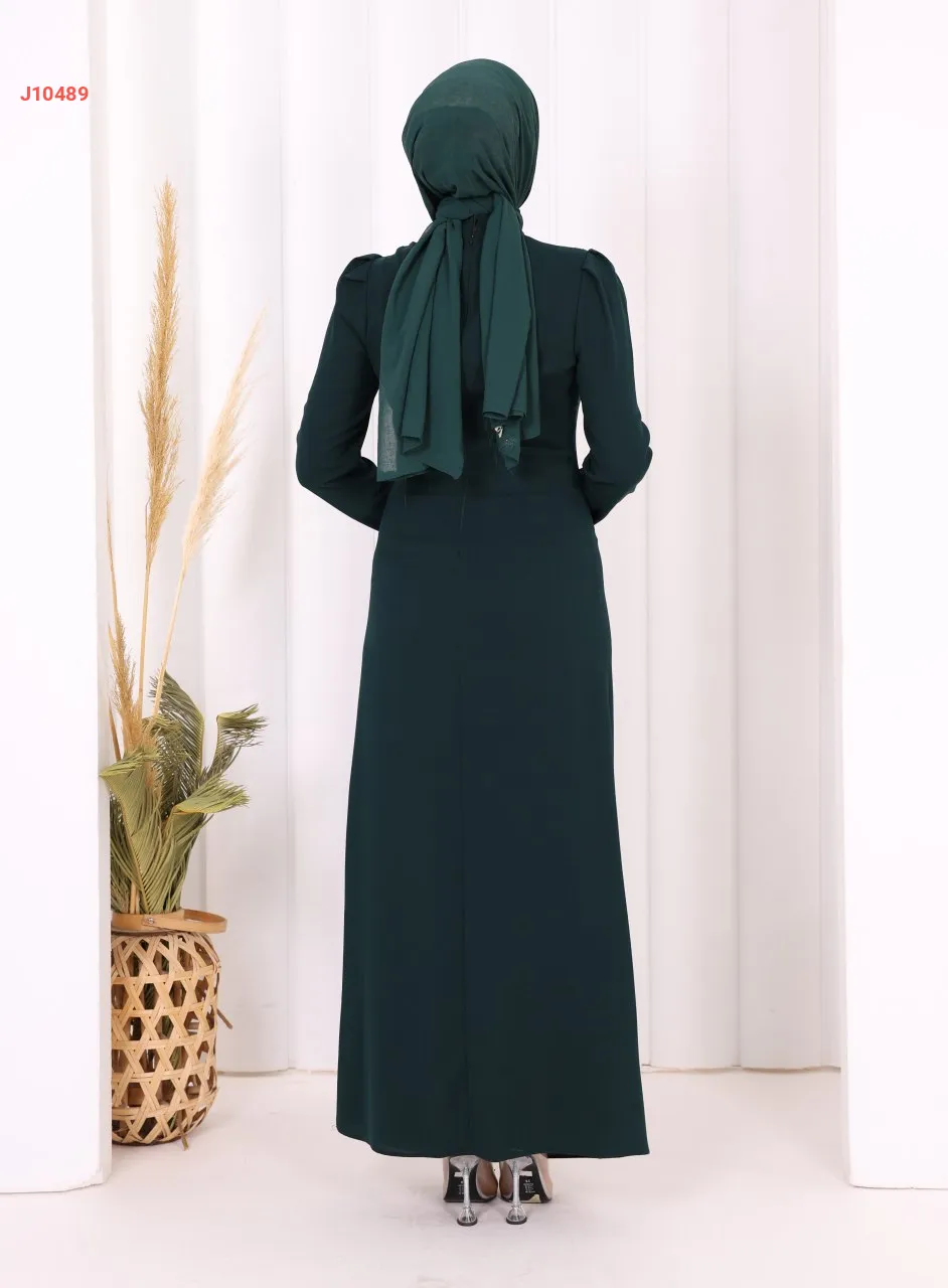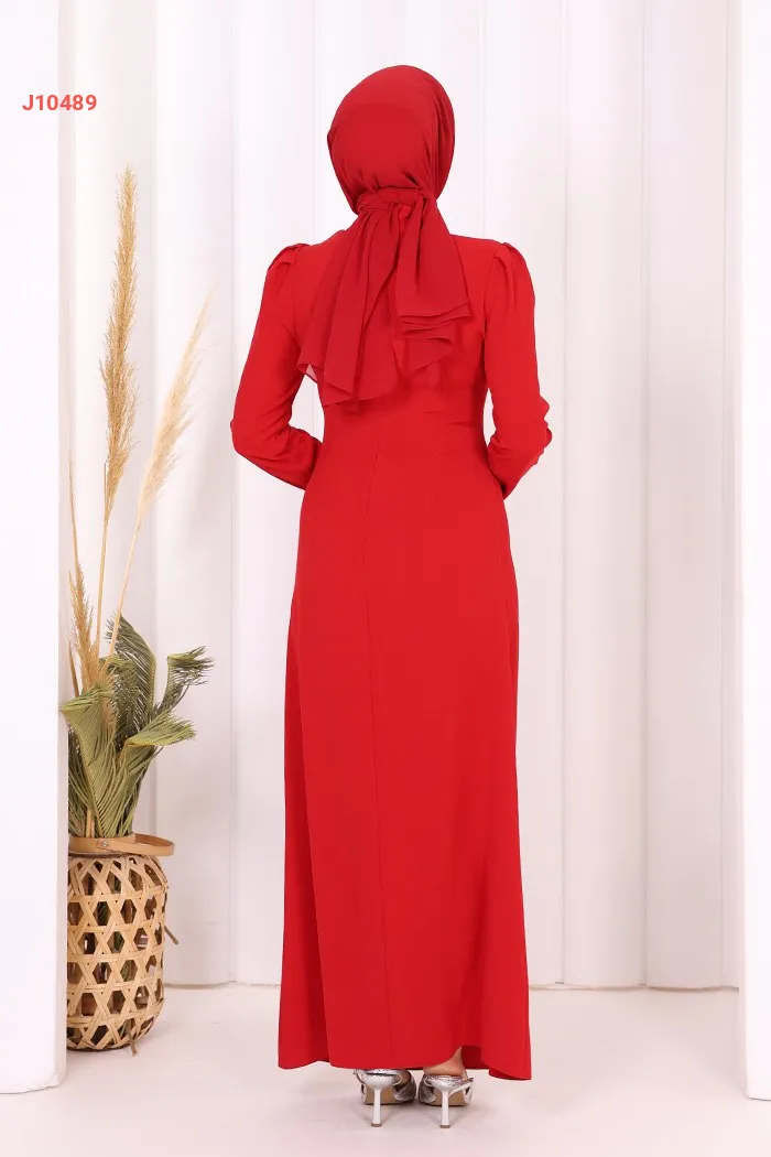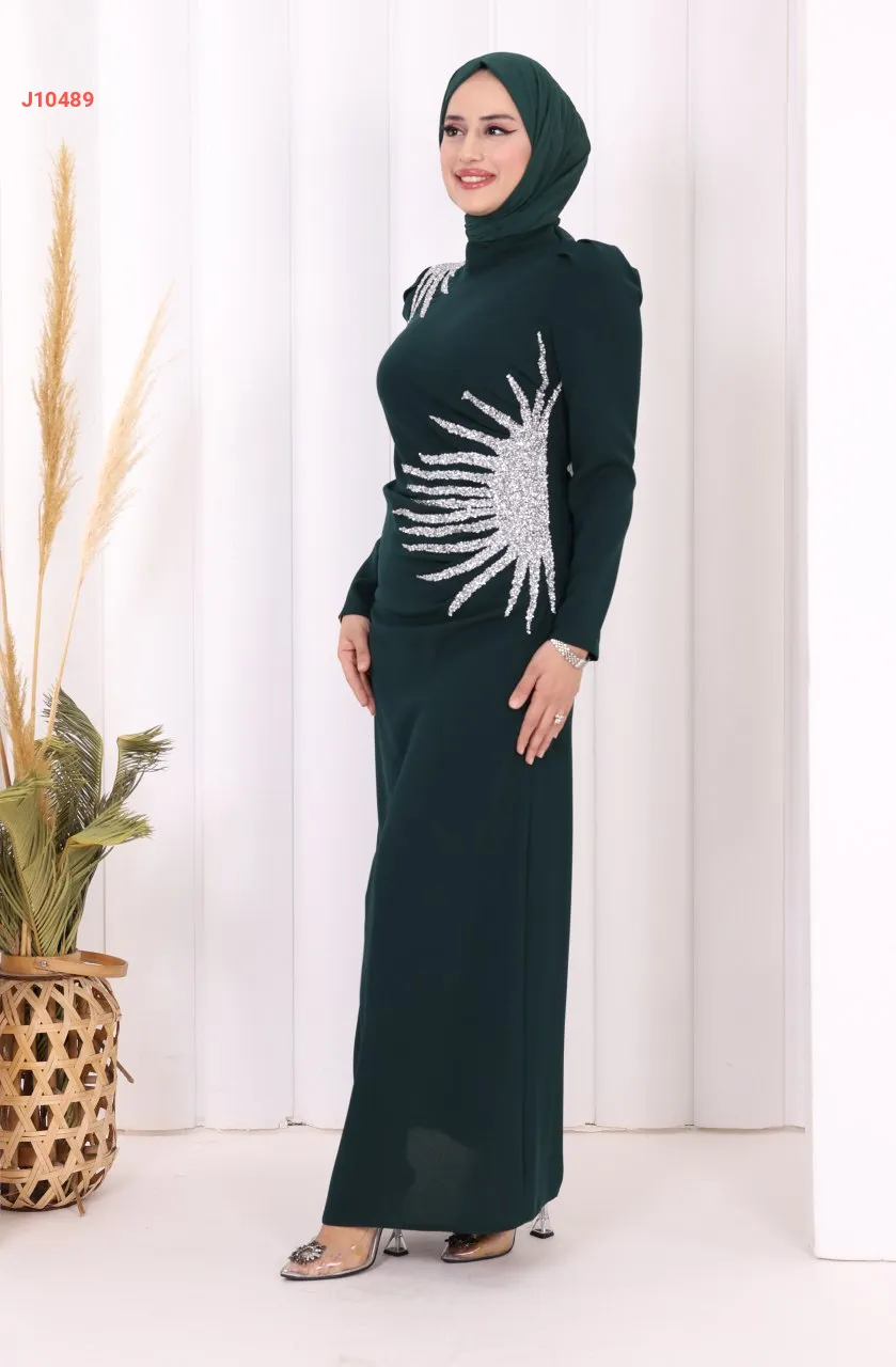 فستان سواريه للمحجبات بأكمام ضيق شك فضي عند الصدر والكتف