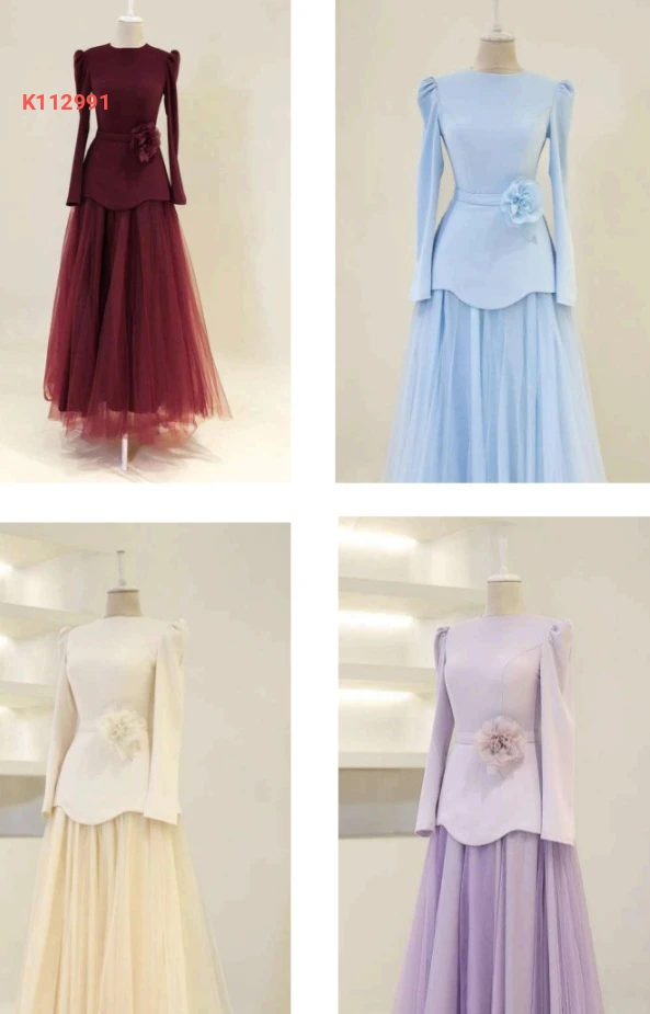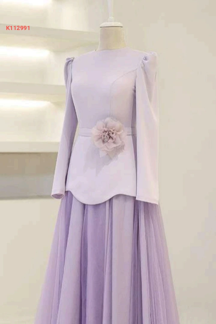 فستان سهرة محجبات مع بروش ورد