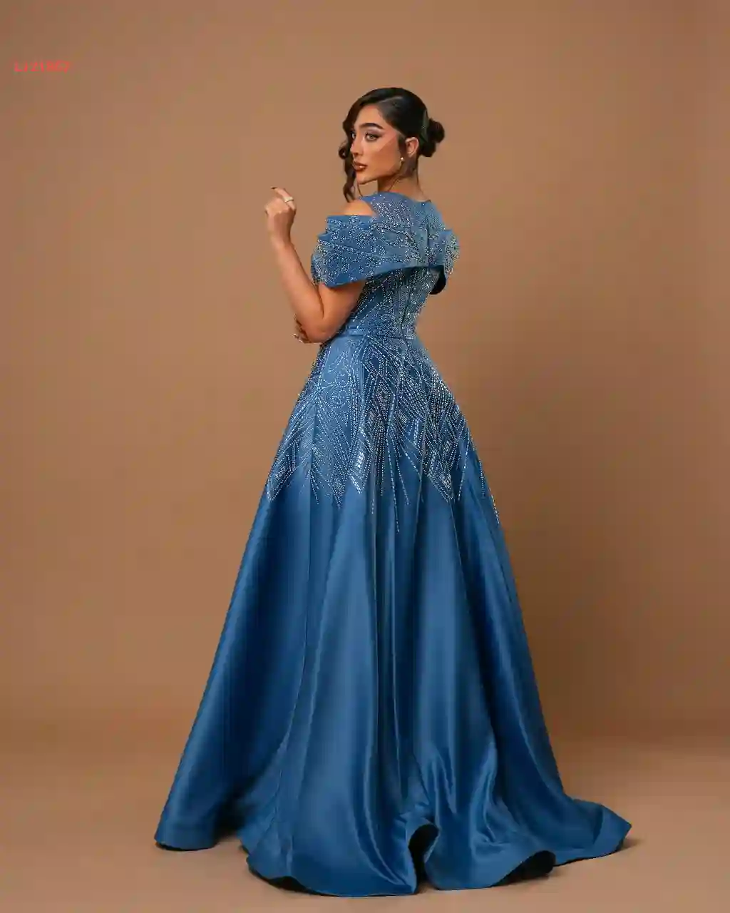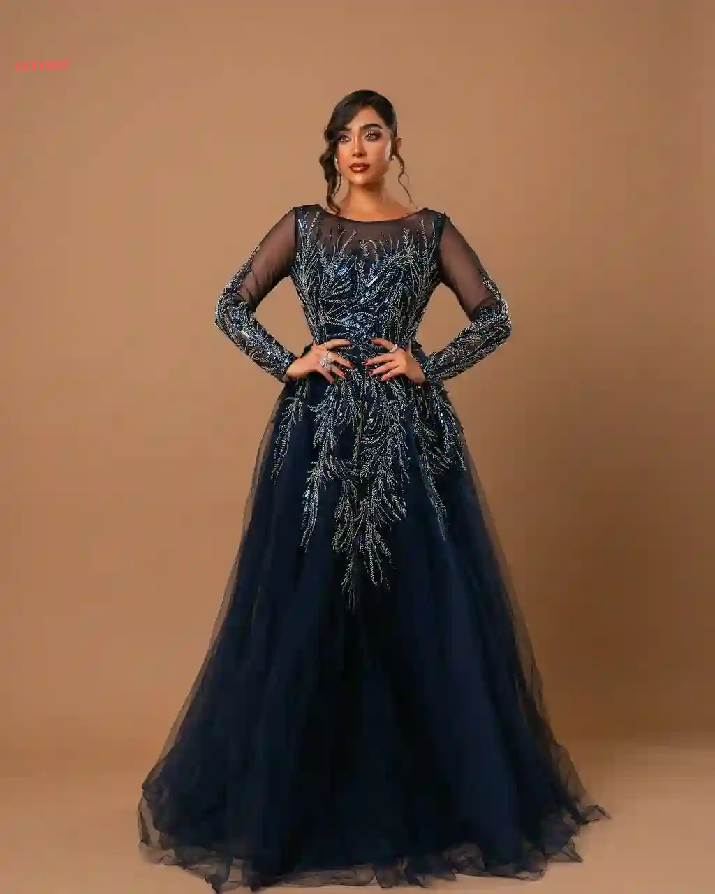 فستان سهرة مخمل مرصع من الصدر والكم فاخر