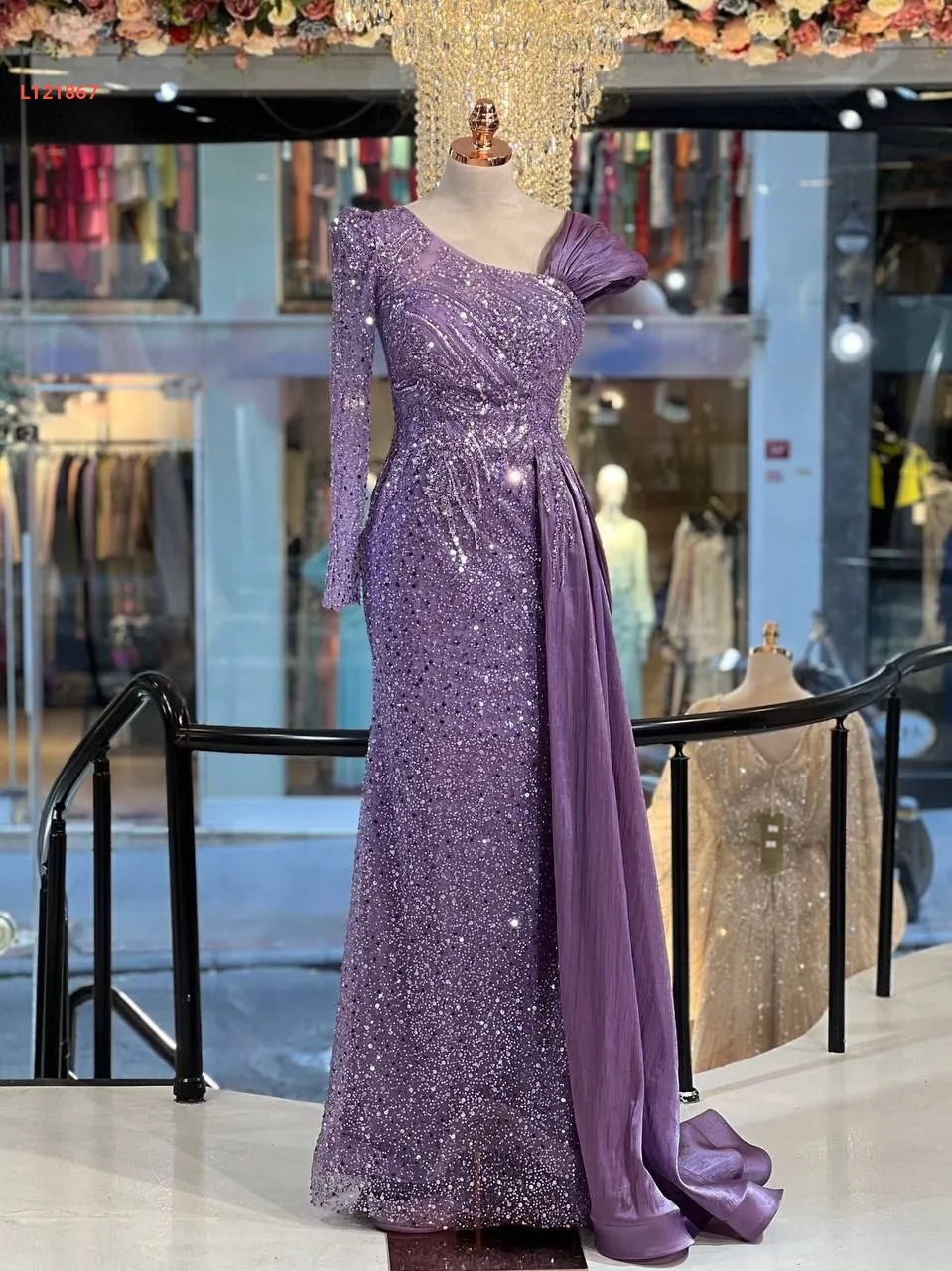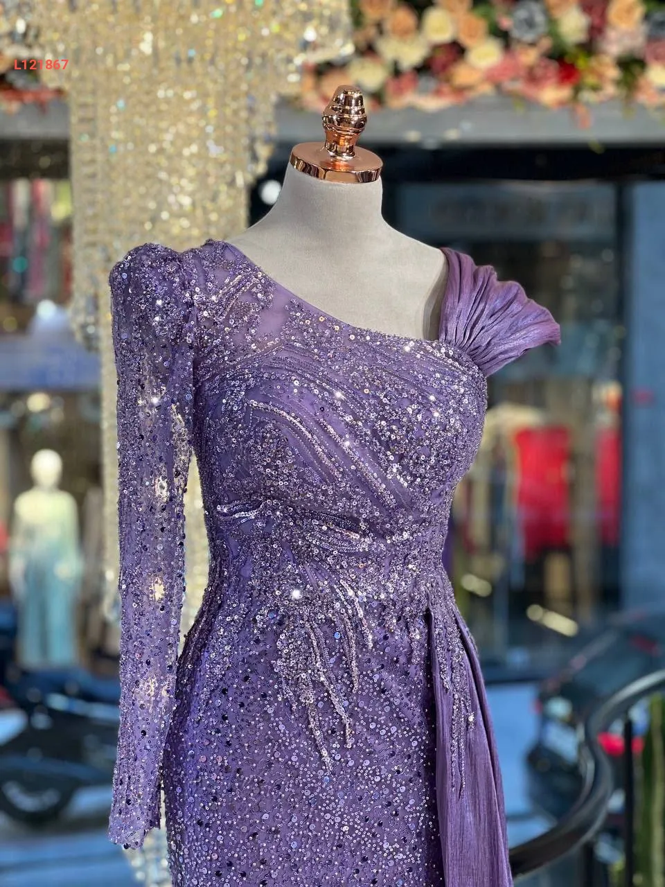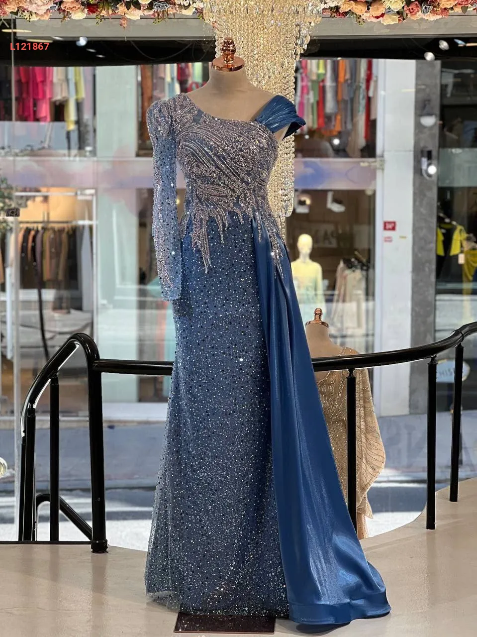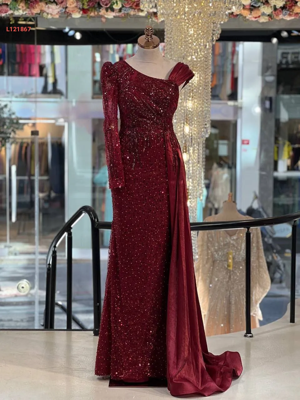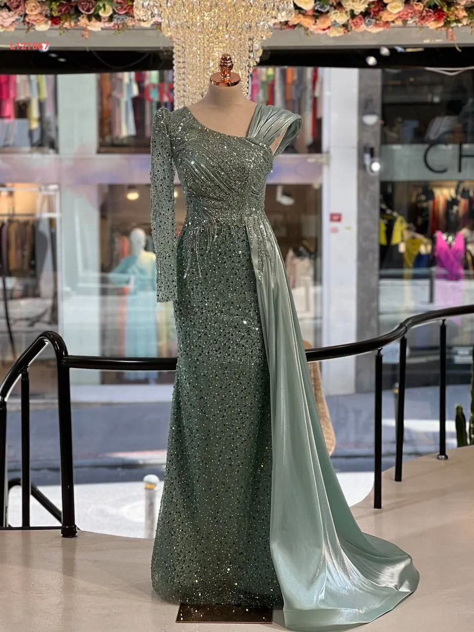 فستان سهرة، شك مكثف ، بكم واحد مع شاحط جانبي