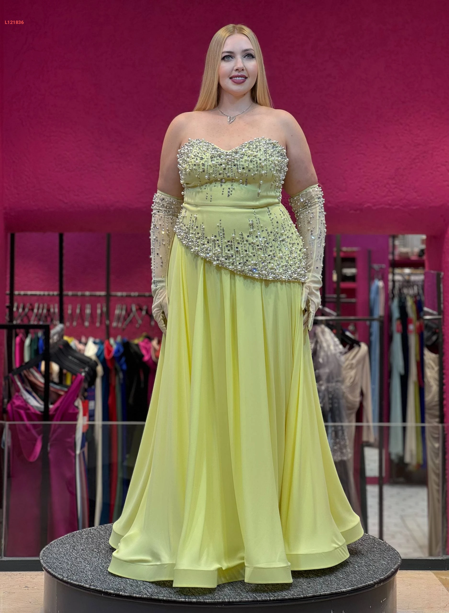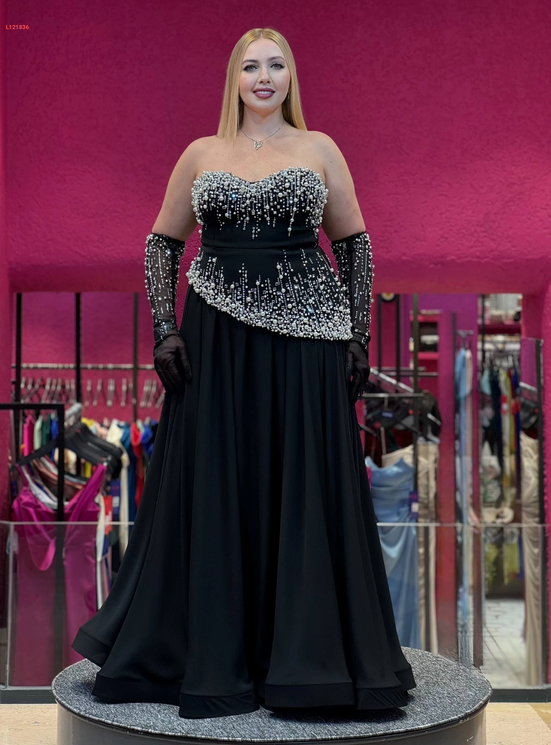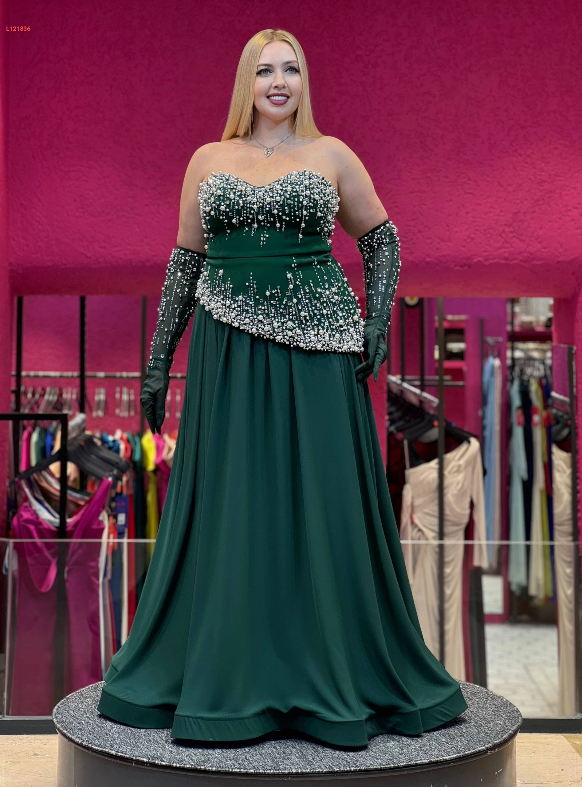فستان سهرة مشكوك كات مع زنود