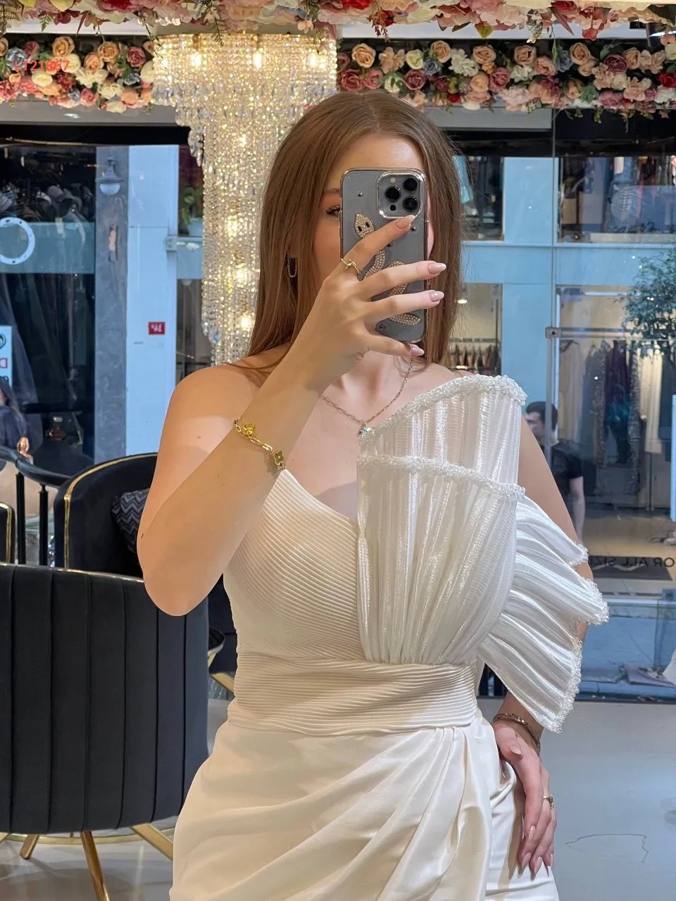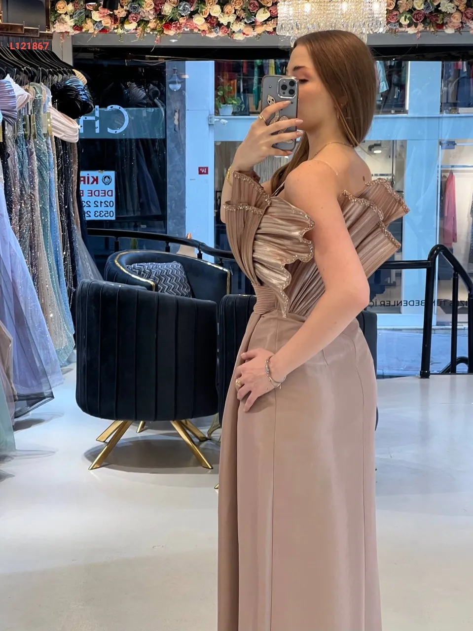 فستان سواريه، سادة مكشوف الأكتاف والظهر ، مع فتحة من الامام