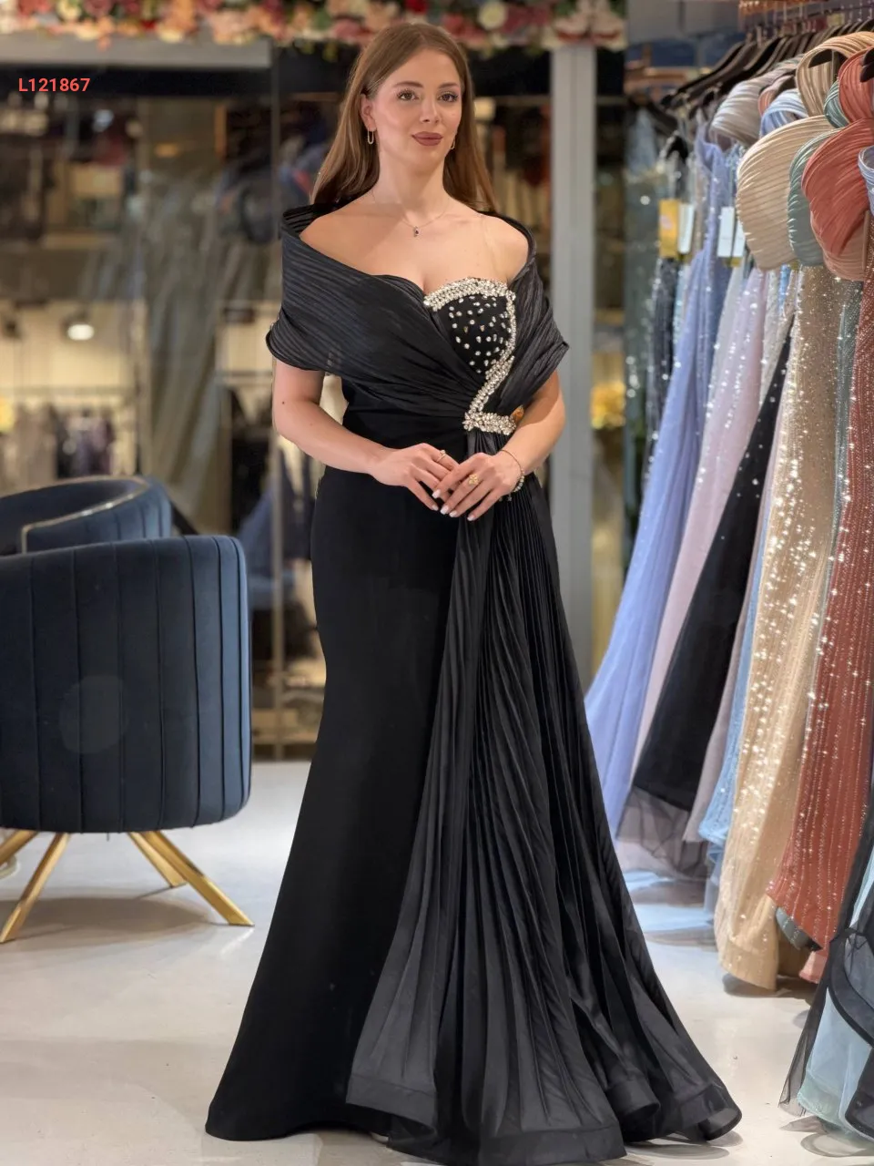 فستان سهرة ، مكشوف الصدر، مرصع بالألماس