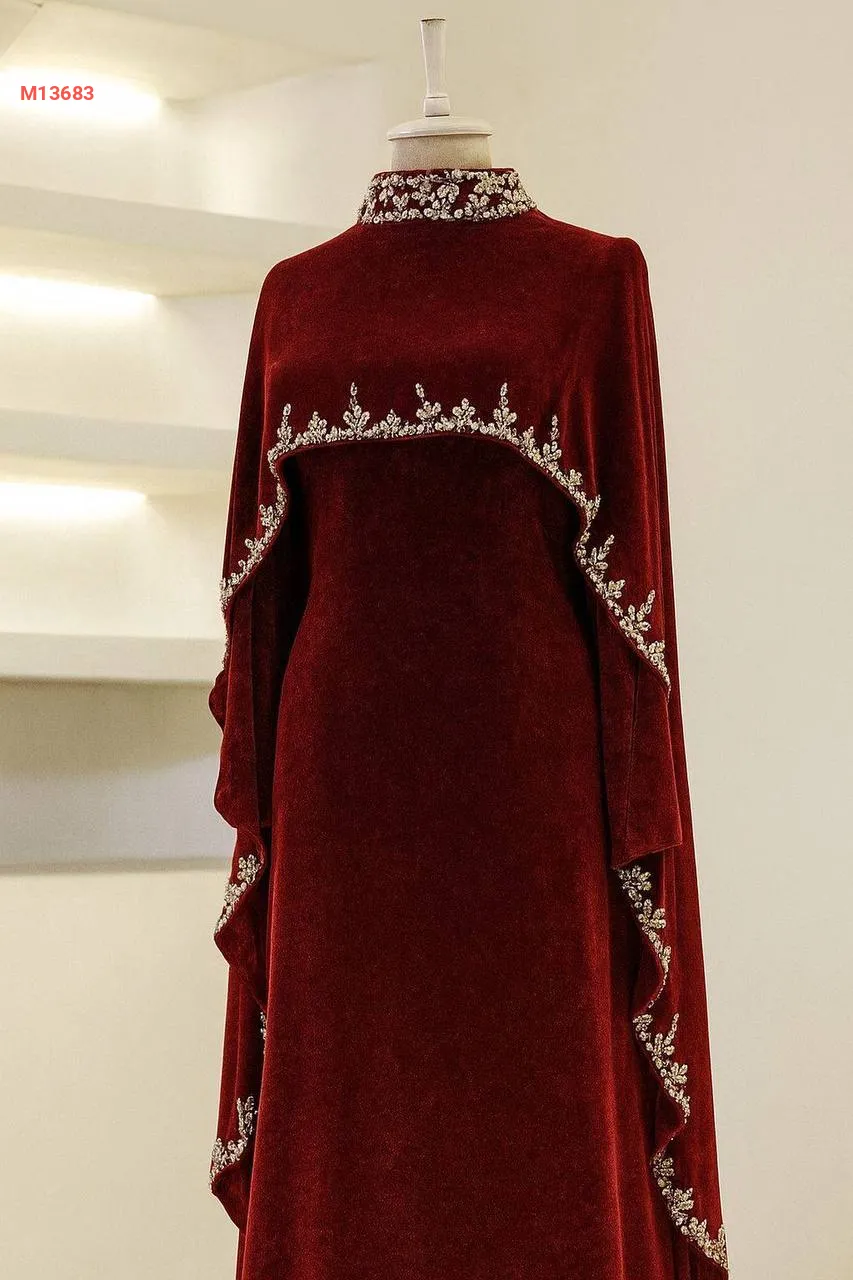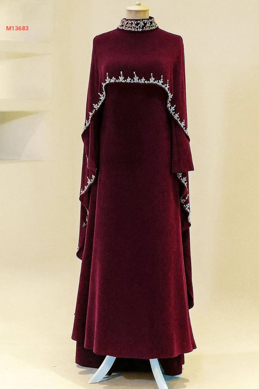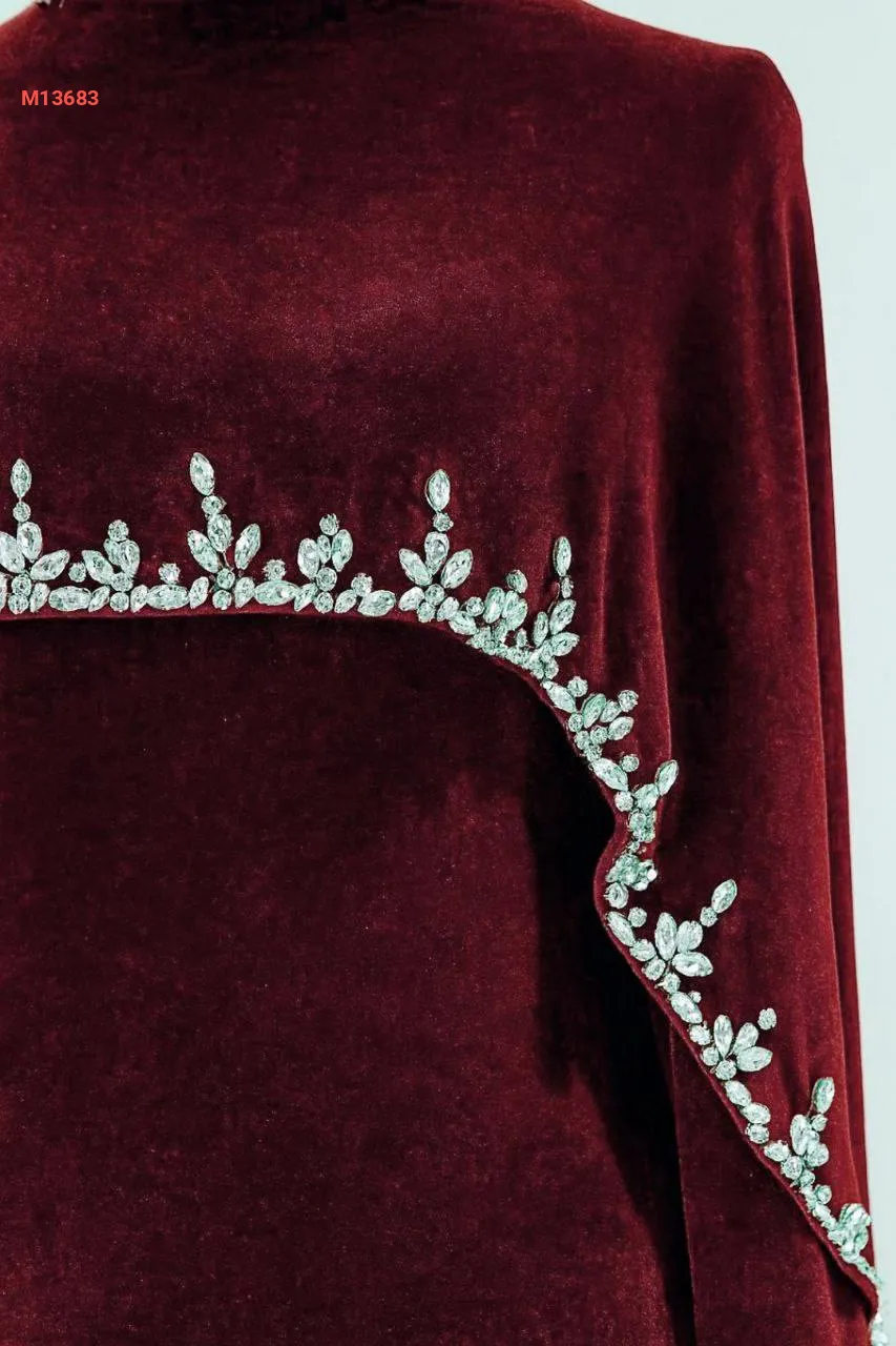 فستان سواريه مع كاب مخمل مرصع بالكريستال الفضي