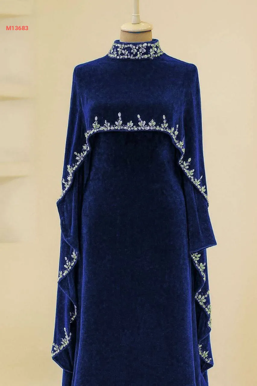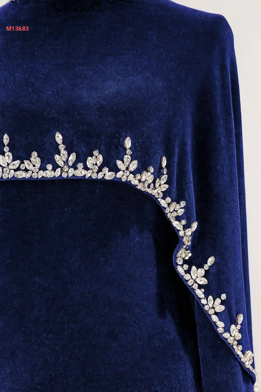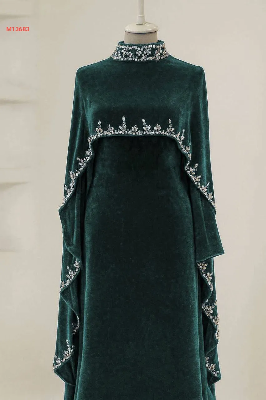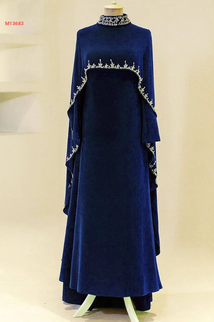 فستان سواريه مع كاب مخمل مرصع بالكريستال الفضي