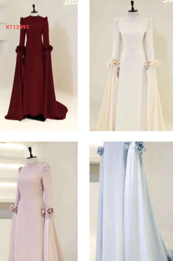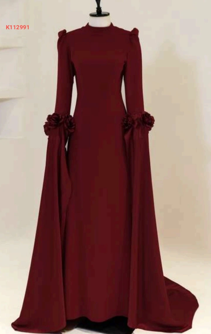 فستان سهرة بأكمام طويلة مع شاحط وورد