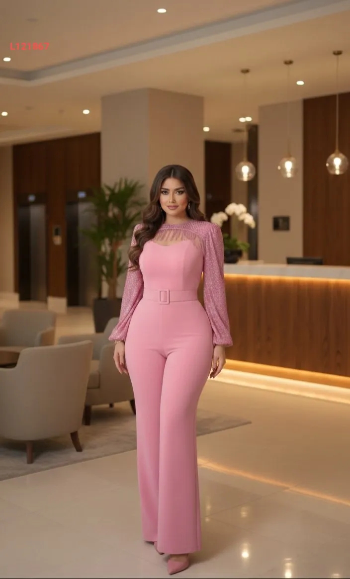 أفرول سهرة بأكمام لامعة، مع حزام