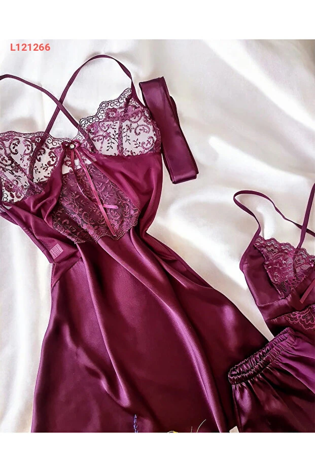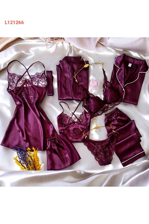 طقم تشطيب العروس 8 قطع من حرير الستان لون موف مشمس