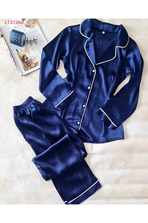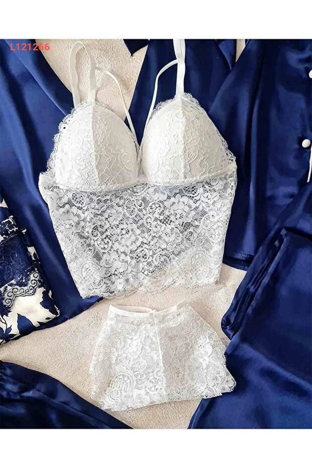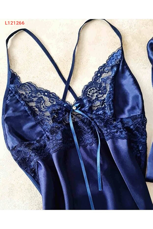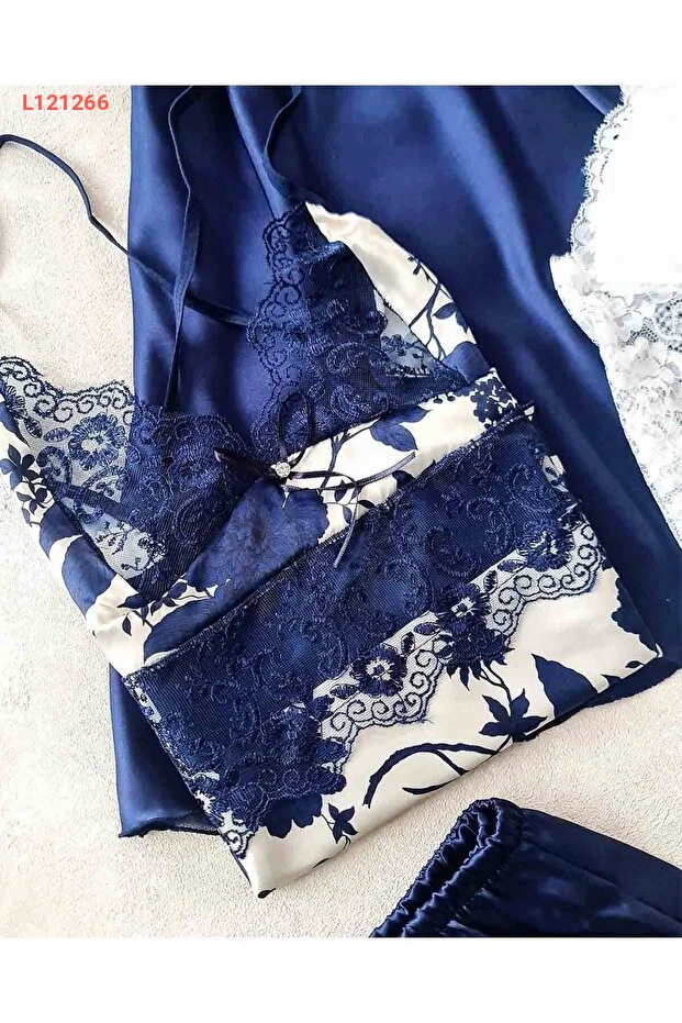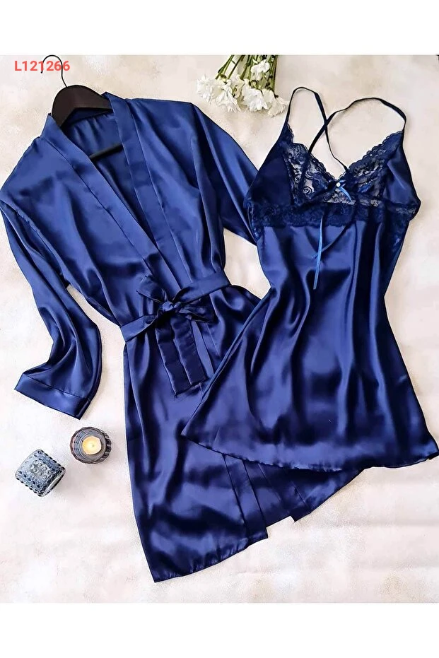 مجموعة العروس الفاخرة 8 قطع من الساتان الحريري الفاخر باللون الأزرق الداكن