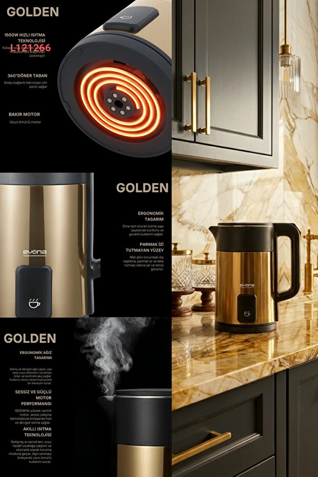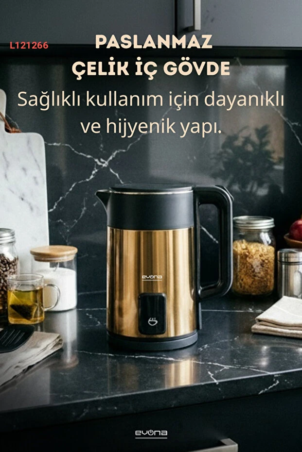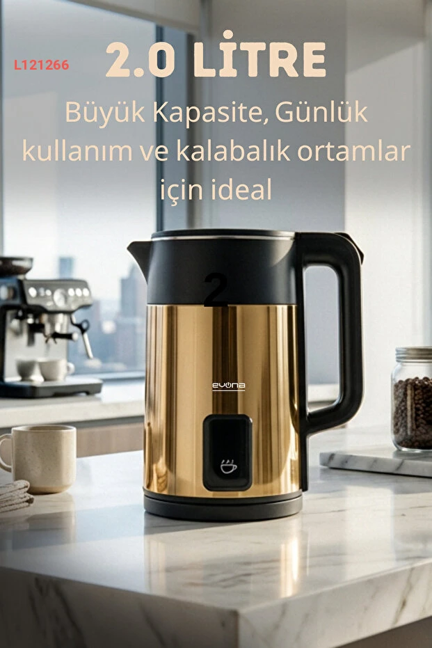 استمتع بتجربة شرب فريدة مع غلاية إيفونا إلارا بريميوم جولد بسعة 2.0 لتر. مصنوعة من الفولاذ المقاوم للصدأ، تتميز بتصميم أنيق وعصري، بالإضافة إلى قدرة تسخين سريعة تضمن لك مشروبات ساخنة في أسرع وقت ممكن. توفر لك تقنية الأمان المدمجة راحة البال أثناء الاستخدام، مما يجعلها قطعة مثالية لمطبخك.