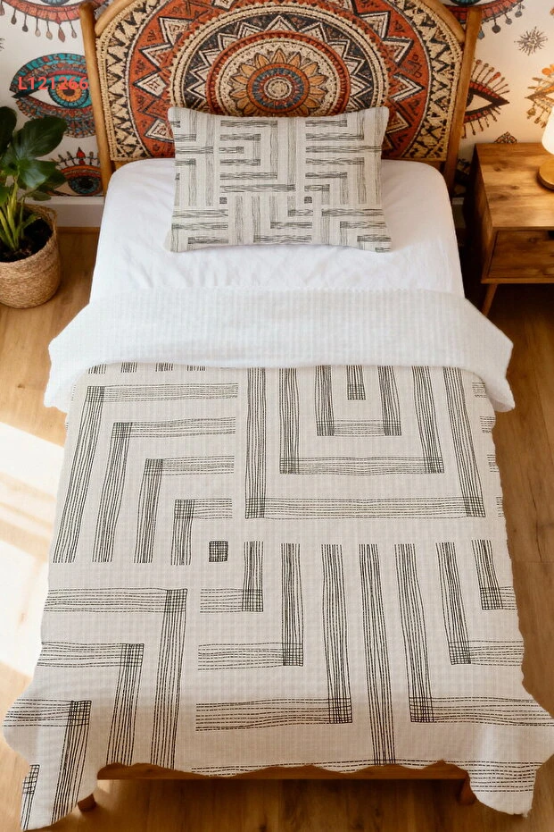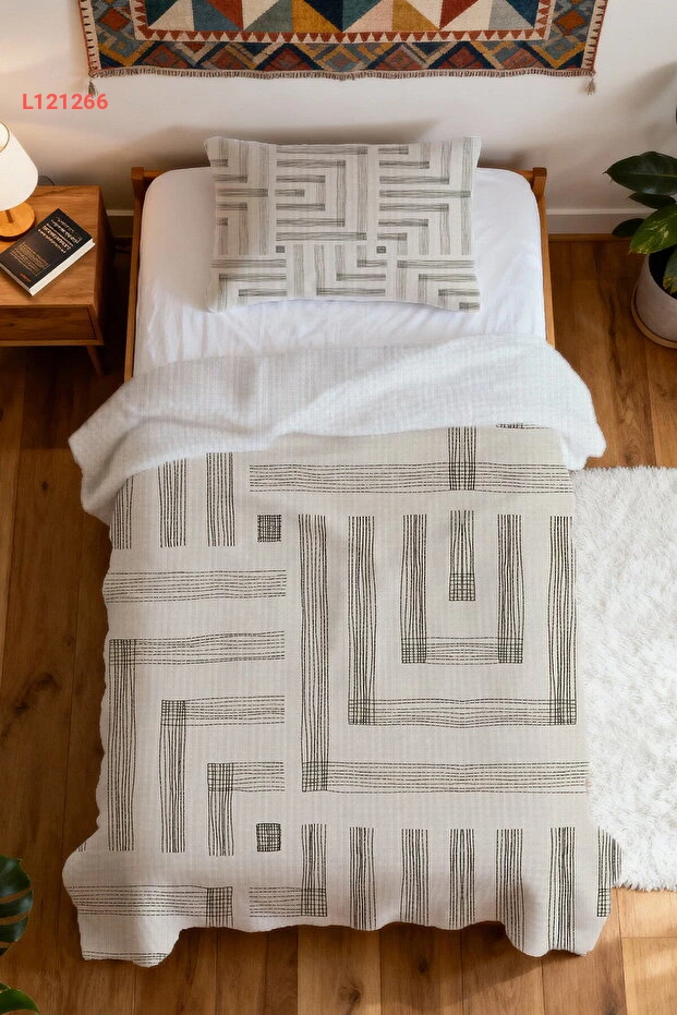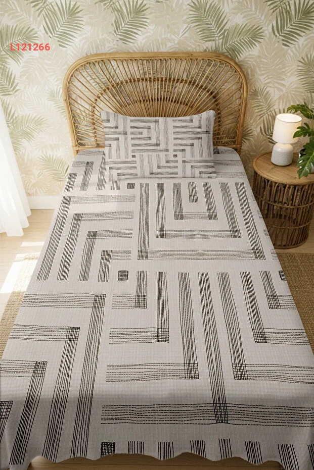 استمتع بأقصى درجات الراحة والأناقة مع طقم البيك الفردي من افبانيا، المصنوع من 100% قطن. تتميز بتصميمها الهندسي العصري الذي يضيف لمسة من الجمال إلى غرفة نومك، بينما تضمن لك الأقمشة الناعمة والمتنفسة شعورًا منعشًا طوال الليل. اجعل لياليك أكثر سكونًا وأجوائك أكثر انسجامًا مع هذا الطقم الرائع.