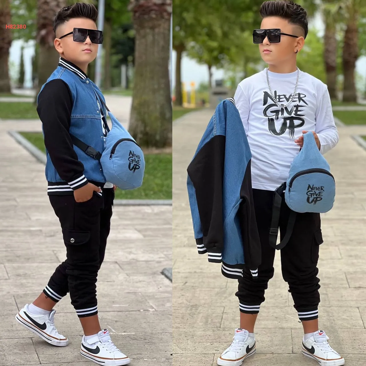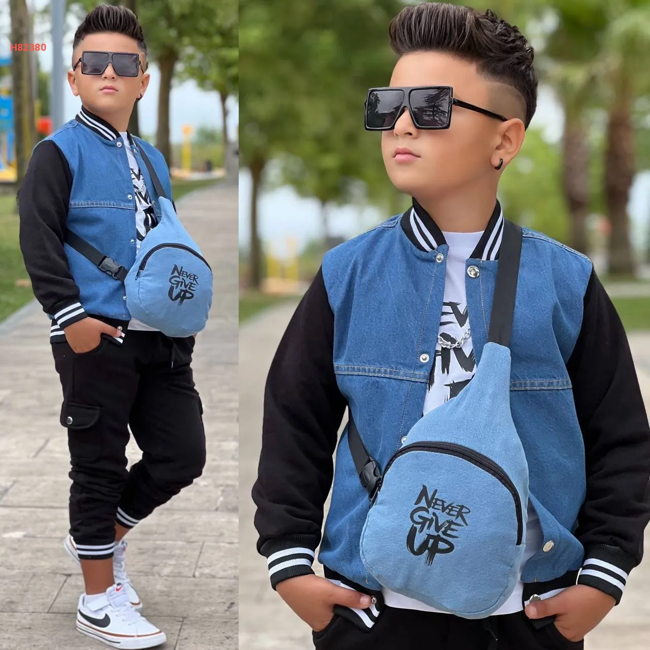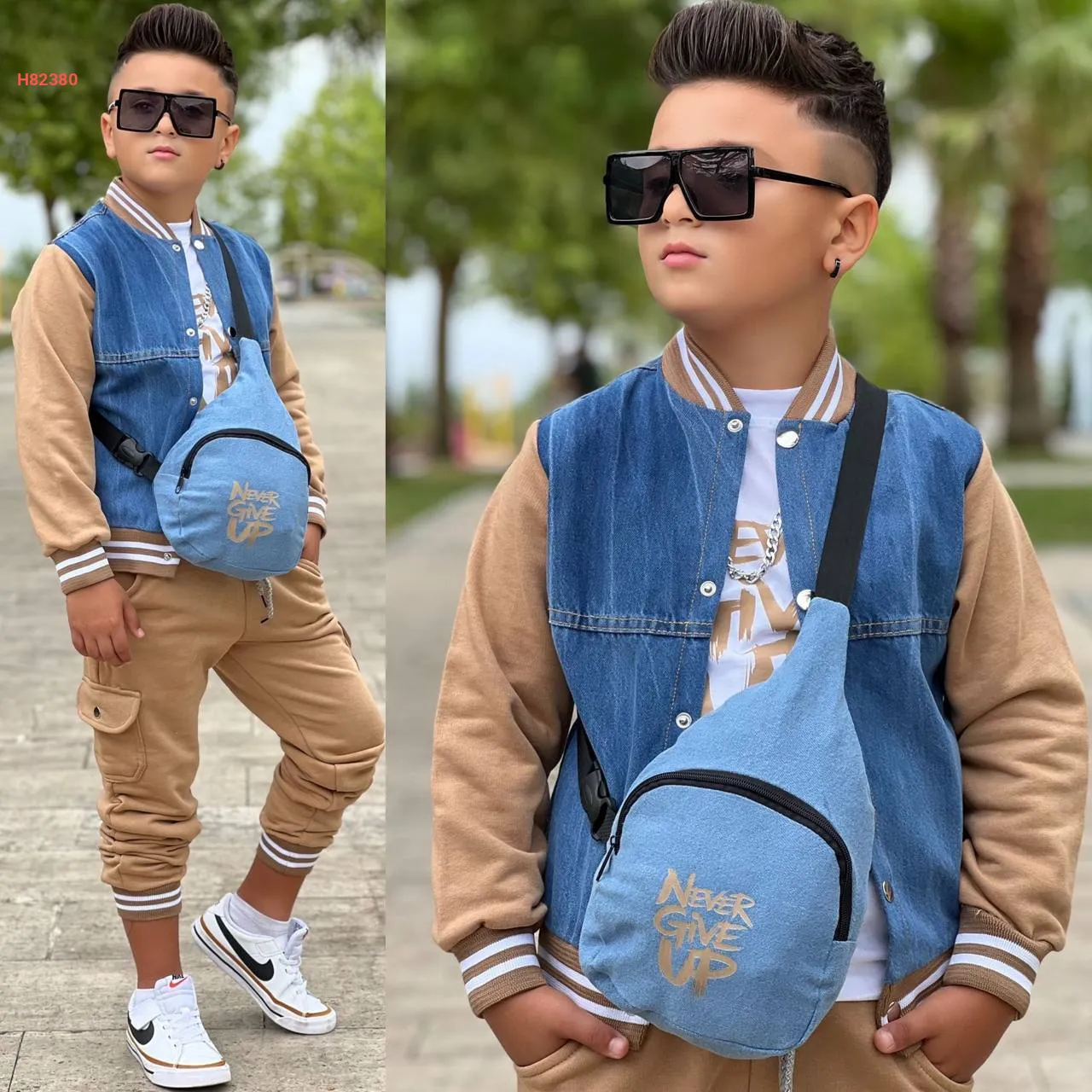 بيجامة صبياني مكلفة جينز مع حقيبة