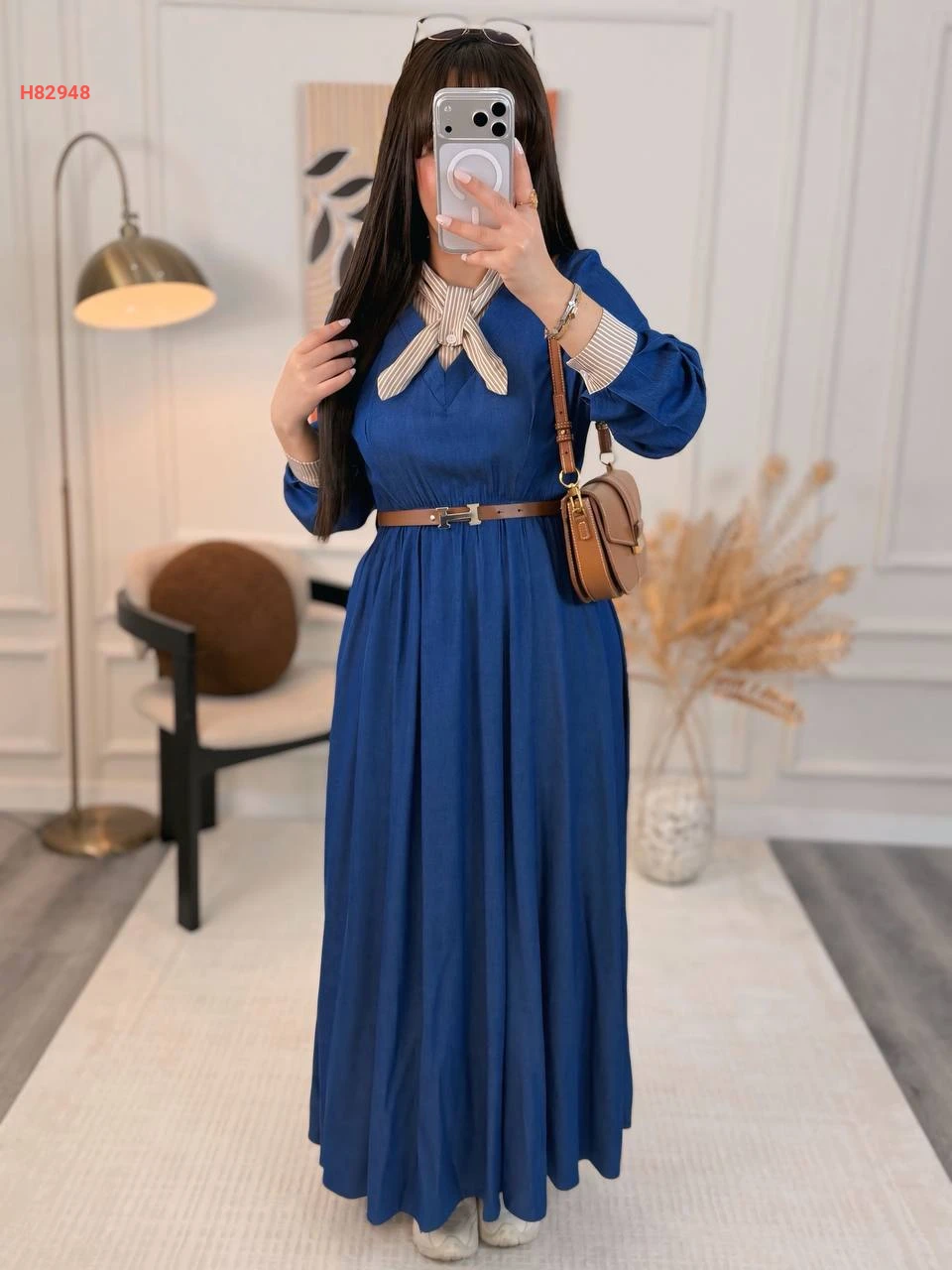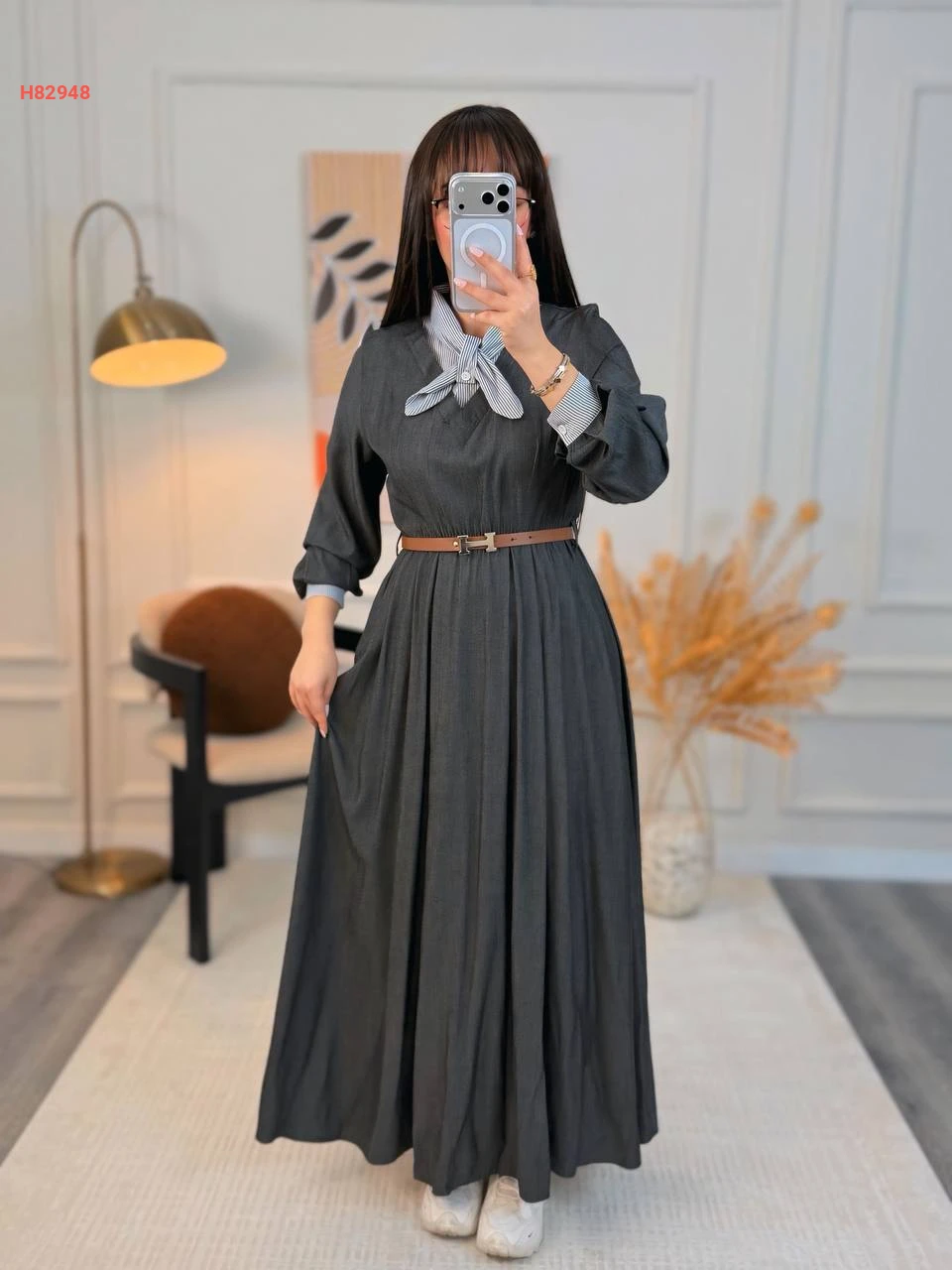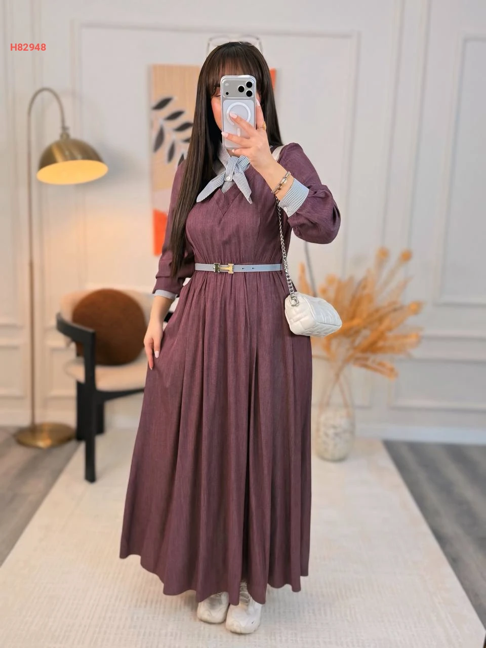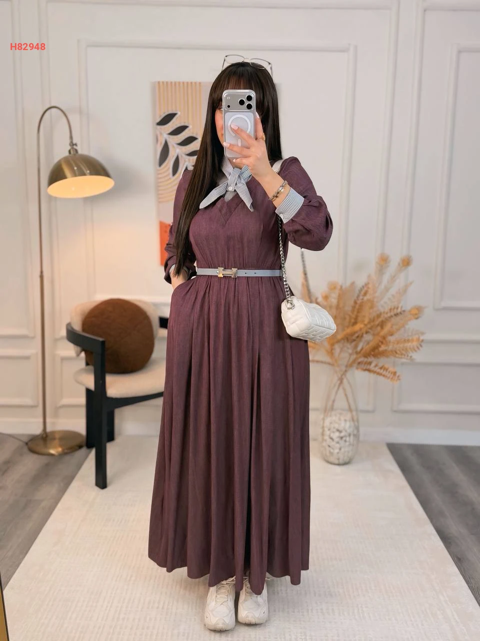 فستان مكلف مع ربطة عنق وحزام