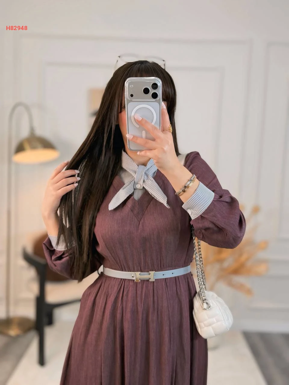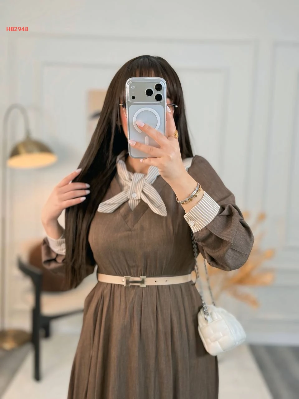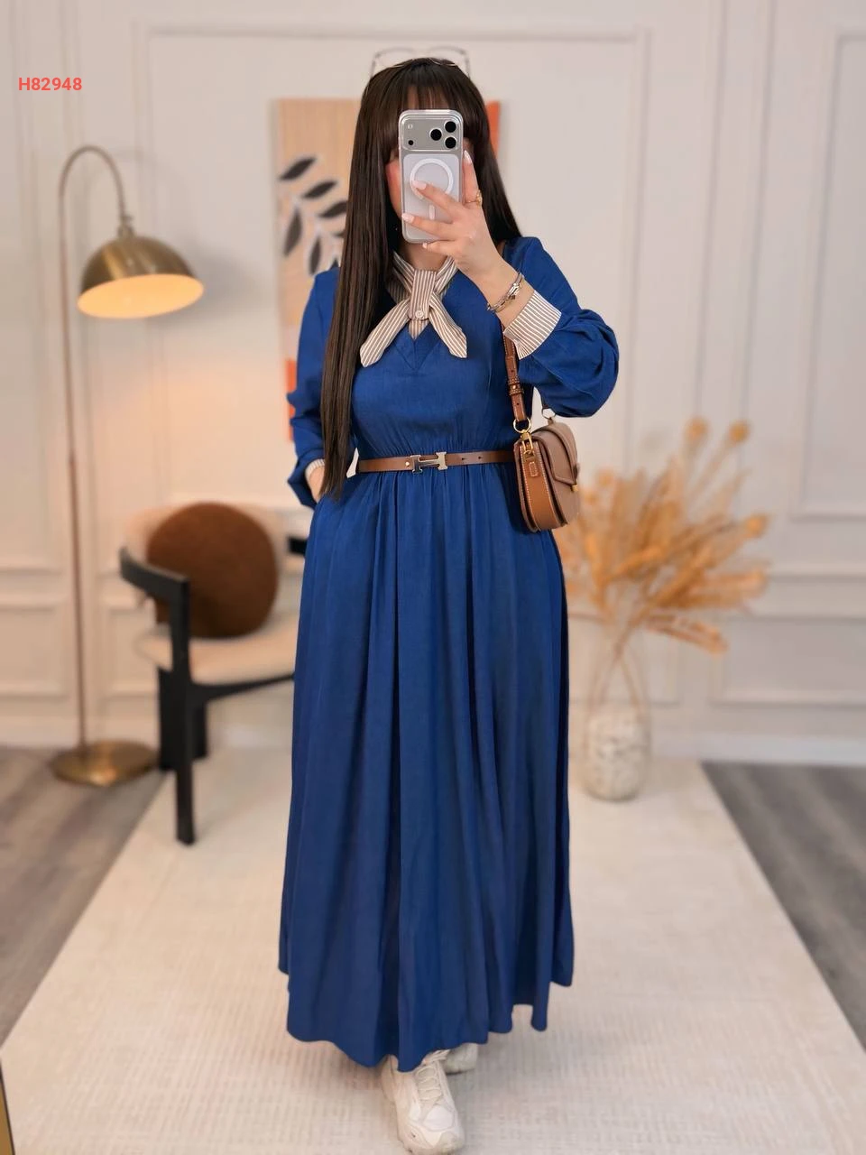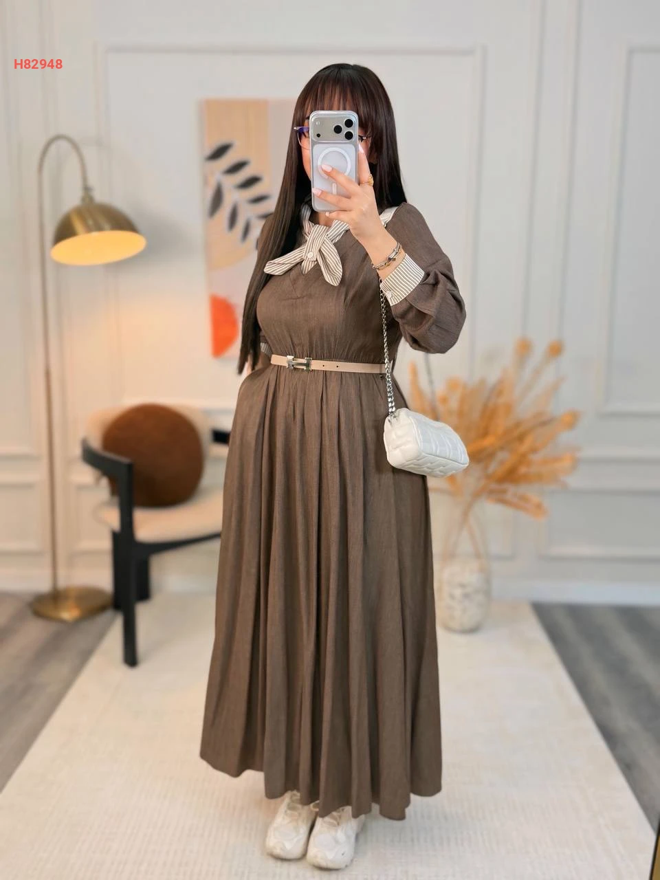 فستان مكلف مع ربطة عنق وحزام