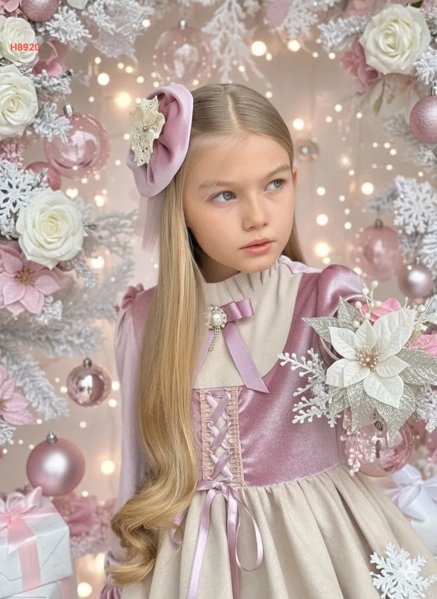 فستان بناتي مكلف مخمل مع حقيبة