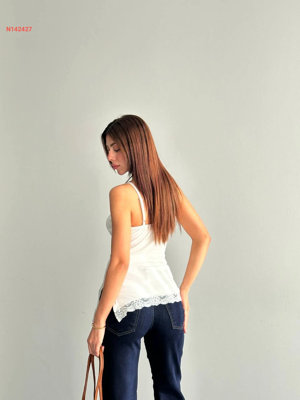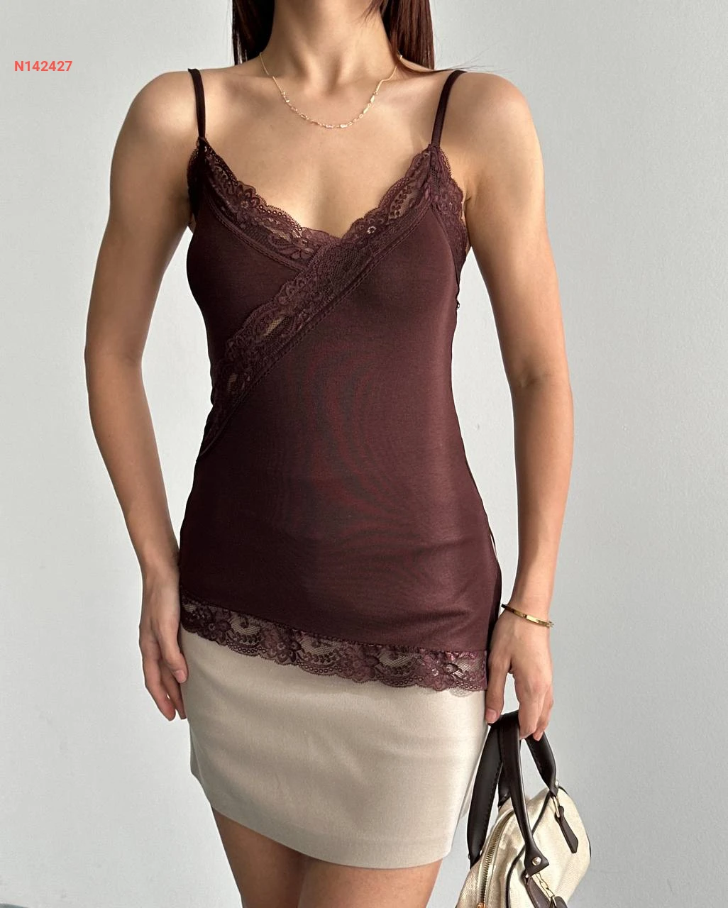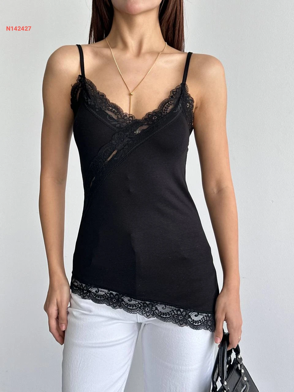 بلوزة مكلفة دانتيل بحمالات رفيعة