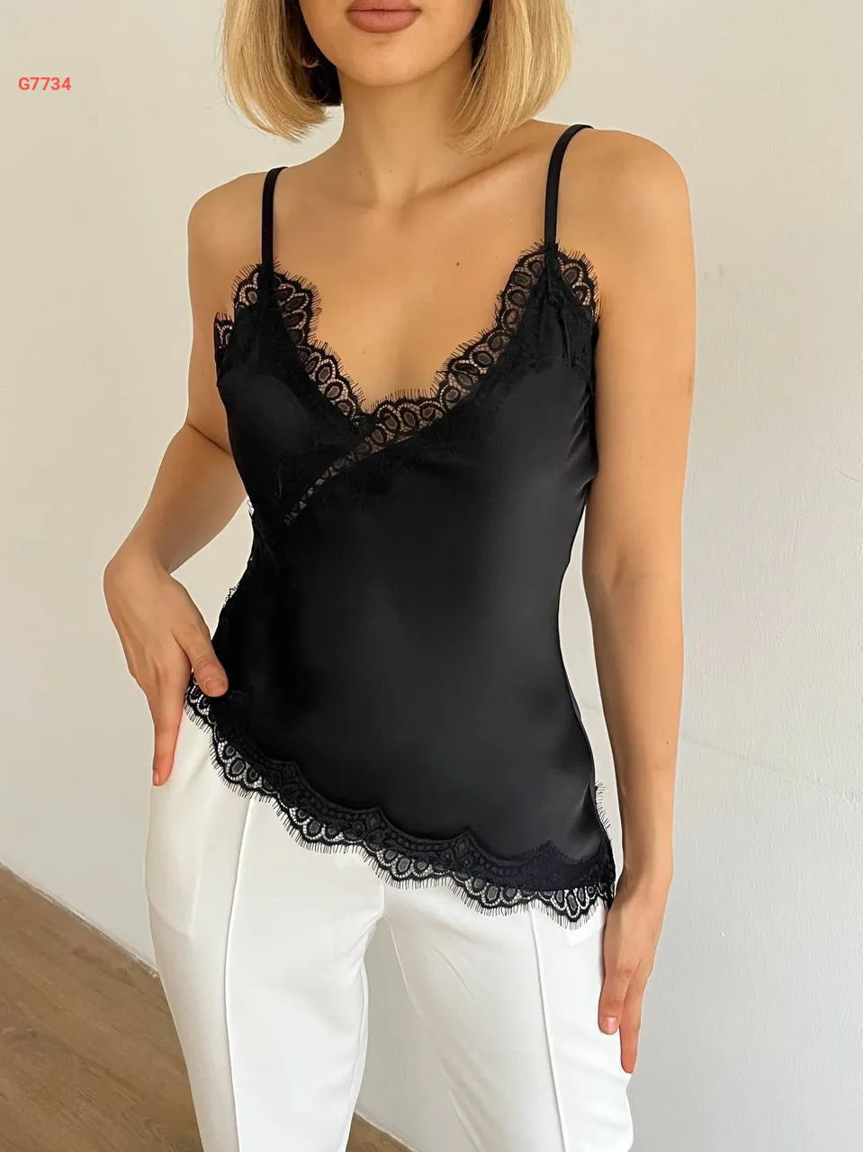 بلوزة مكلفة دانتيل بحمالات رفيعة