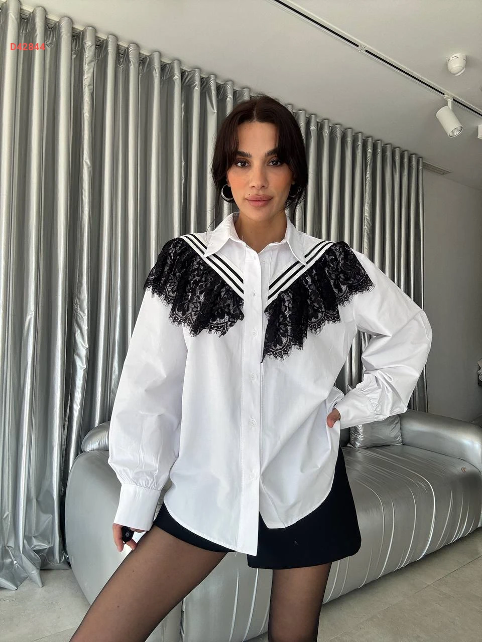 قميص مكلف دانتيل مع تفاصيل مقلمة