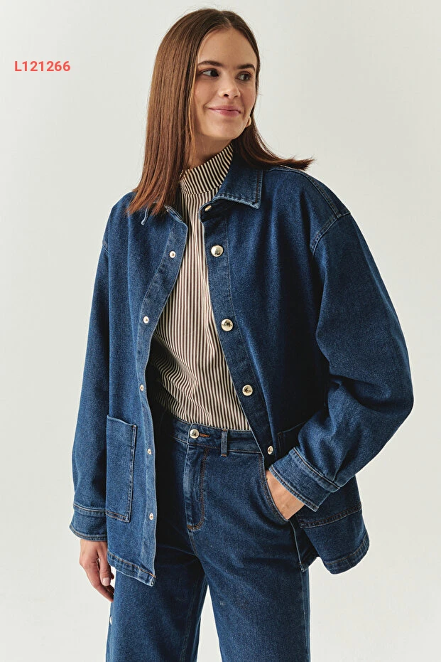 اكتشف أناقة لا مثيل لها مع جاكت الدنيم إنديغو بتفاصيل الأزرار المعدنية. تصميمه الكلاسيكي مع جيوب عملية يوفر لك مظهراً عصريًا وراحة استثنائية، مما يجعله الخيار المثالي لكل المناسبات. أضف لمسة من التميز إلى خزانة ملابسك مع هذا الجاكت المميز.