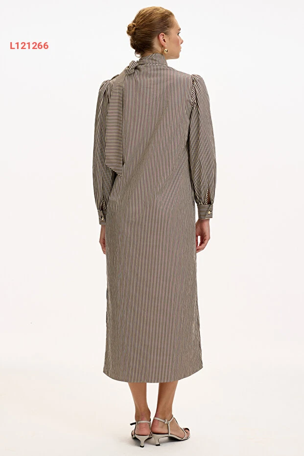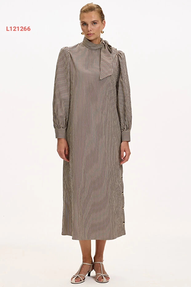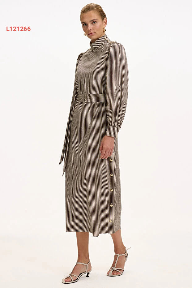 استمتع بأناقة الربيع مع فستان Exquise ذو الياقة العالية والأكمام الطويلة، المصنوع من قماش مريح ومتين. يأتي بتصميم مخطط عصري وحزام يحدد الخصر، مما يمنحك مظهراً أنيقاً يناسب مختلف المناسبات. اجعلي كل خطوة لكِ مميزة مع هذا الفستان الذي يعكس ذوقك الرفيع!