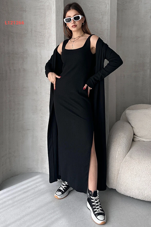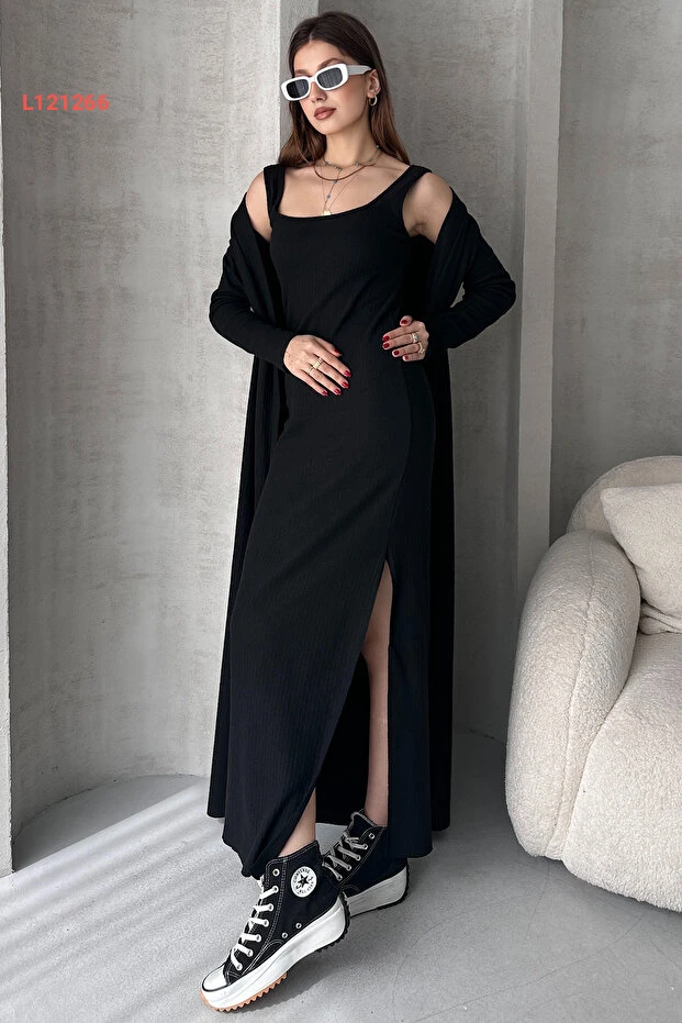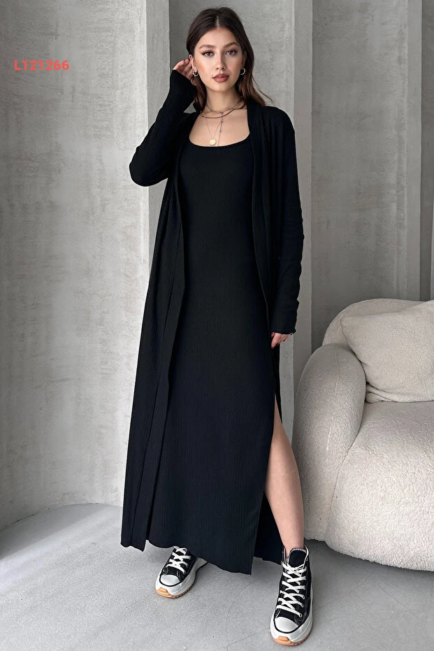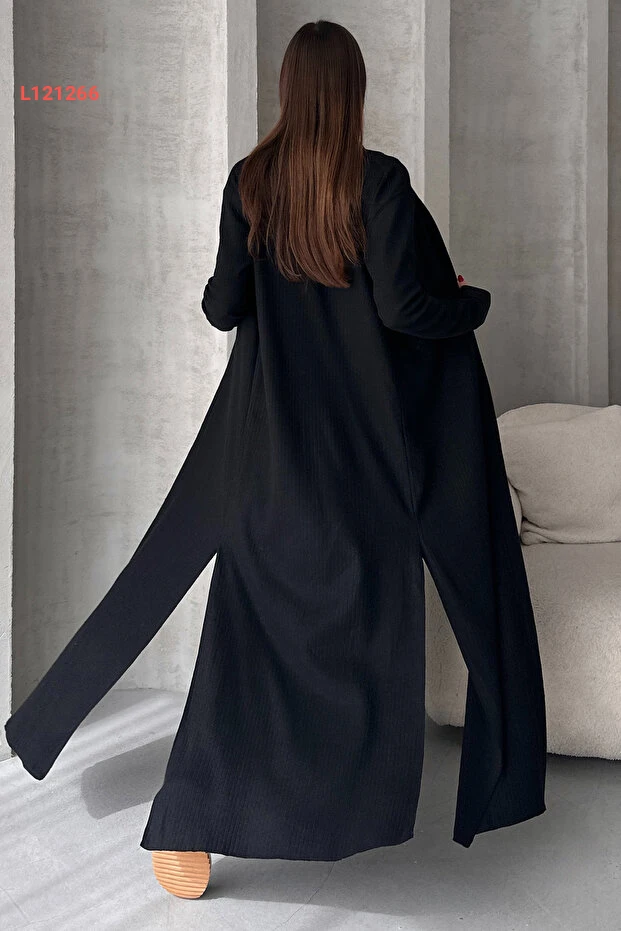 استمتع بجمال الأناقة مع طقم EYYE Siyah Uzun Hırka Uzun Elbise الذي يجمع بين الراحة والتميّز. يتميز هذا الطقم بجاكيت طويل أنيق وفستان جذاب، مما يجعله الخيار المثالي لمناسباتك المختلفة. صُنع من خامات عالية الجودة تُضفي لمسة من الفخامة وتضمن شعورك بالراحة طوال اليوم.
