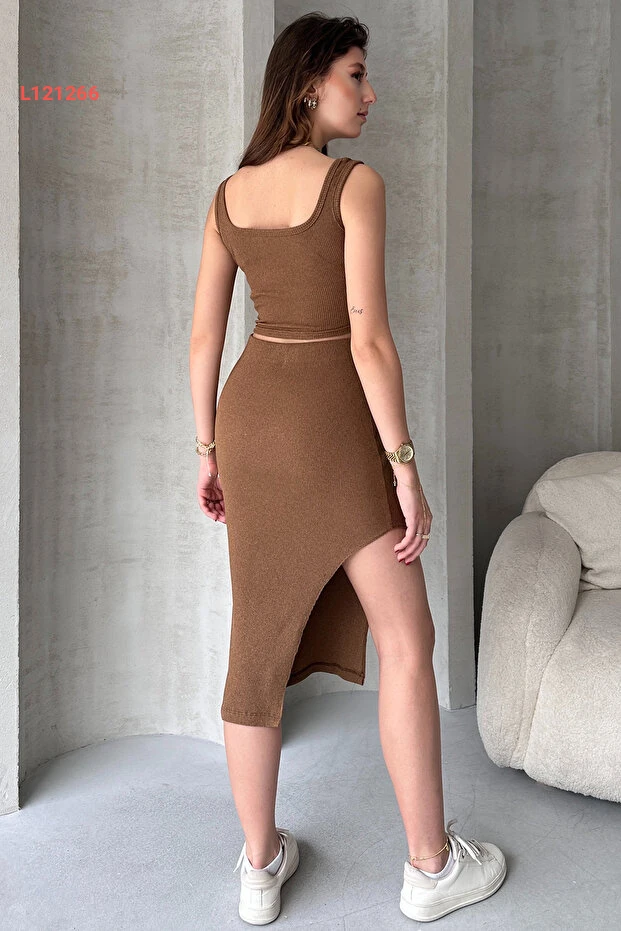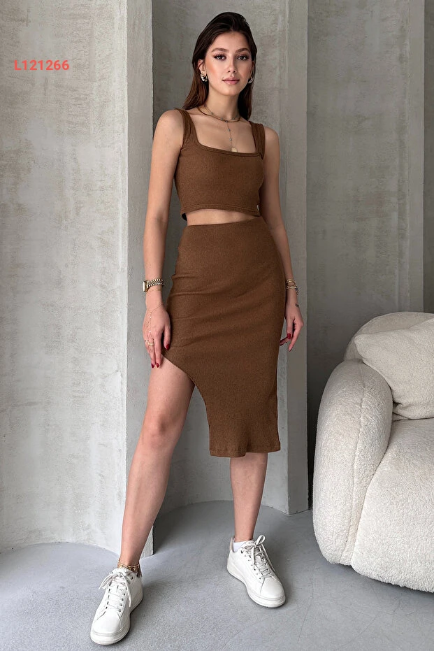 استمتعي بأناقة لا مثيل لها مع مجموعة EYYE Camel Kaşkorse Crop Etek Takım. يتكون هذا التصميم العصري من توب قصير وتنورة كشكارسي، يتميز بقماش ناعم ومريح يضمن لكِ حرية الحركة. أضيفي لمسة من الرقي إلى خزانة ملابسك مع هذا الإطلالة المثالية لمناسباتك اليومية!