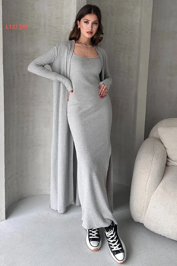 استمتع بالأناقة والراحة مع طقم EYYE الرمادي المائل الطويل، الذي يتكون من سترة طويلة وفستان أنيق. تصميمه الفريد يجمع بين الأناقة العصرية والراحة القصوى، مما يجعله خيارًا مثاليًا لتنسيقاتك اليومية أو المناسبات الخاصة. أضف لمسة من التميز إلى خزانتك مع هذا الطقم الذي يضمن لك الإطلالة المثالية!