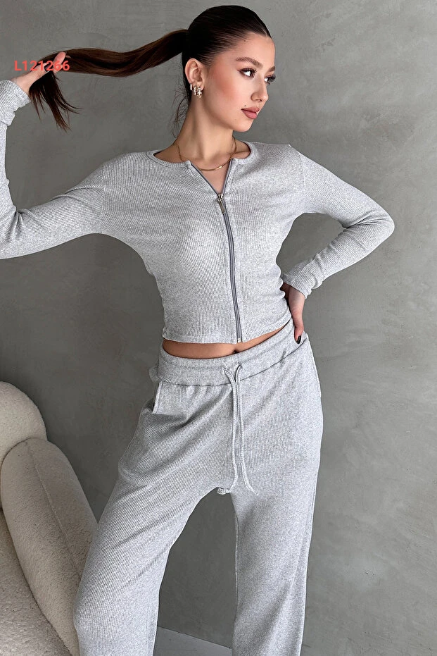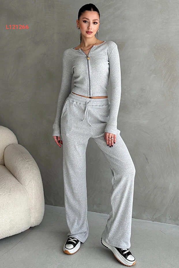 استمتعِ بإطلالة أنيقة وعصرية مع طقم EYYE المكون من بنطال جري ملانج وبلوزة ذات سحاب، الذي يجمع بين الراحة والأناقة. التصميم المتناغم والموديل المصنوع من قماش الكاشكورس يوفر لكِ حرية الحركة، بينما يضيف اللمسات العصرية لمظهركِ اليومي. اختاري هذا الطقم لتظهري بأفضل حالاتكِ في كل مناسبة.