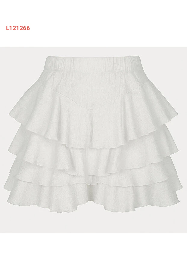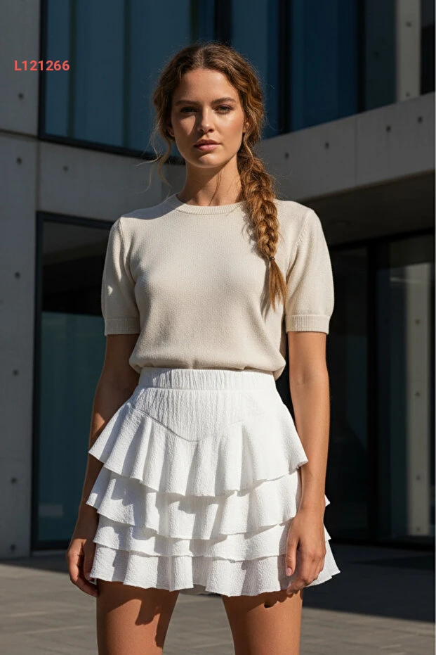 أضف لمسة أنثوية لمظهرك مع تنورة EYYE بيضاء بفروفتل ومتصلة بتصميم مريح وأنيق. تتميز برشاقة وأناقة، مما يجعلها الخيار المثالي لمناسباتك الصيفية أو لإطلالة عصرية يومية. اجعلي كل نظرة إليك مليئة بالسحر والجاذبية مع هذه التنورة المتجددة!