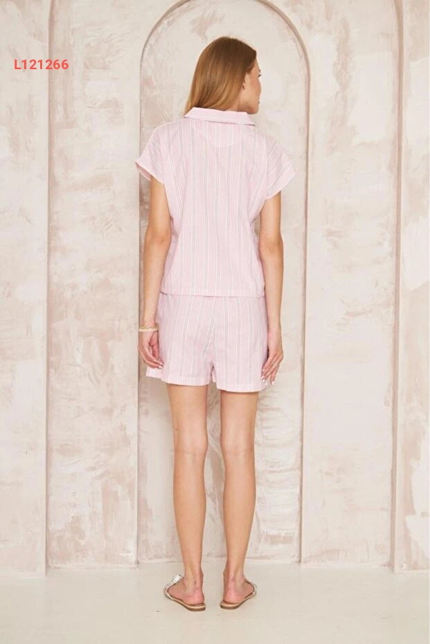 طقم شورت نسائي بكُم قصير ياقة مميزة - مع حزام و جيوب