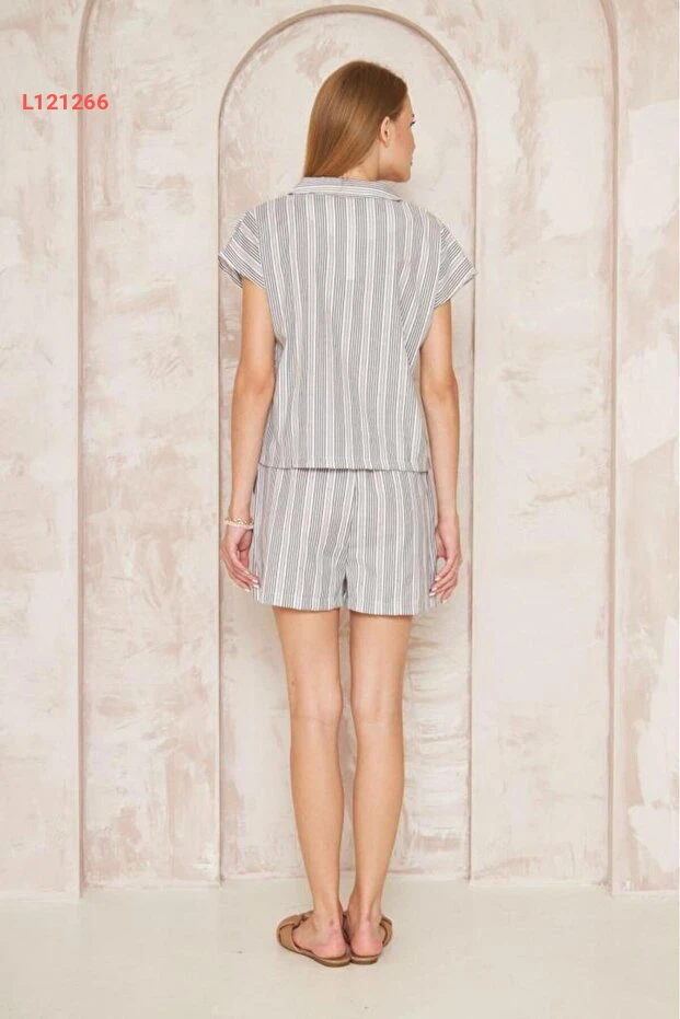 استمتعي بأناقتك مع طقم الشورت المميز من Pasaklı Giyim، الذي يأتي مع جاكيت ياقته أنيقة وأكمام قصيرة تجمع بين الراحة والتميز. طقم مصمم من قماش خاص يوفر لكِ لمسة من الرقي، مع حزام عند الوسط لتحديد الخصر، وبجيوب عملية تضفي لمسة عصرية على إطلالتك. اجعلي كل يوم مناسبة خاصة مع هذا التصميم الفريد!