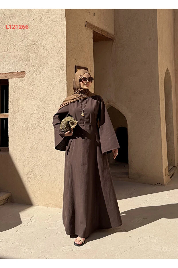 فستان مودا أكسا 2360 بقصة غير متكافئة وأكمام واسعة باللون البني