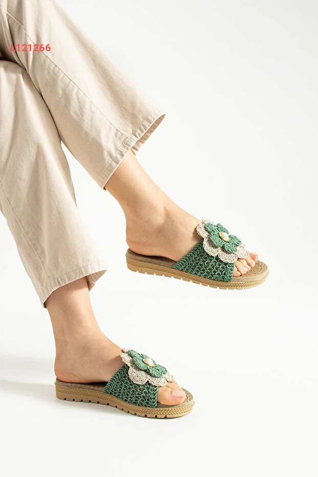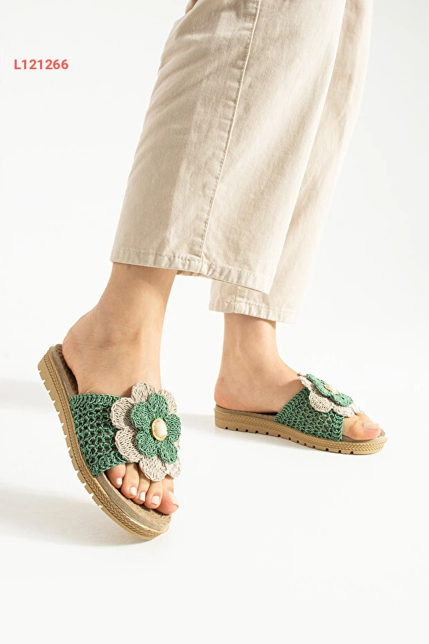 صندل مودا ديفرين الأخضر المنقوش بالزهور للمنزل والحديقة