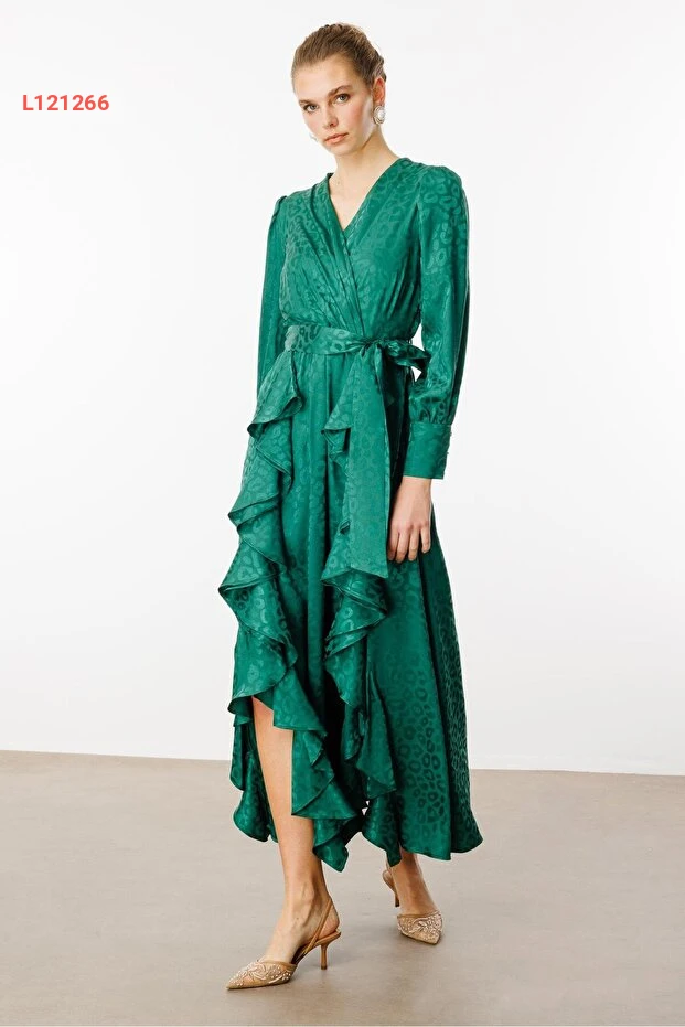 فستان كروزي مزدوج باللون الأخضر مزخرف بنقشة جاكار من مودا إلجي
