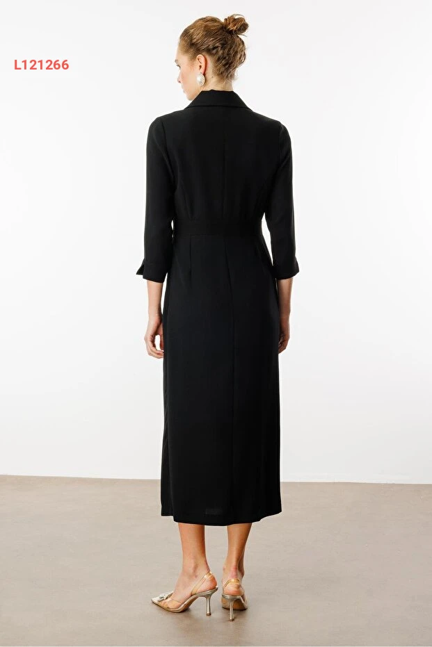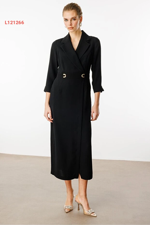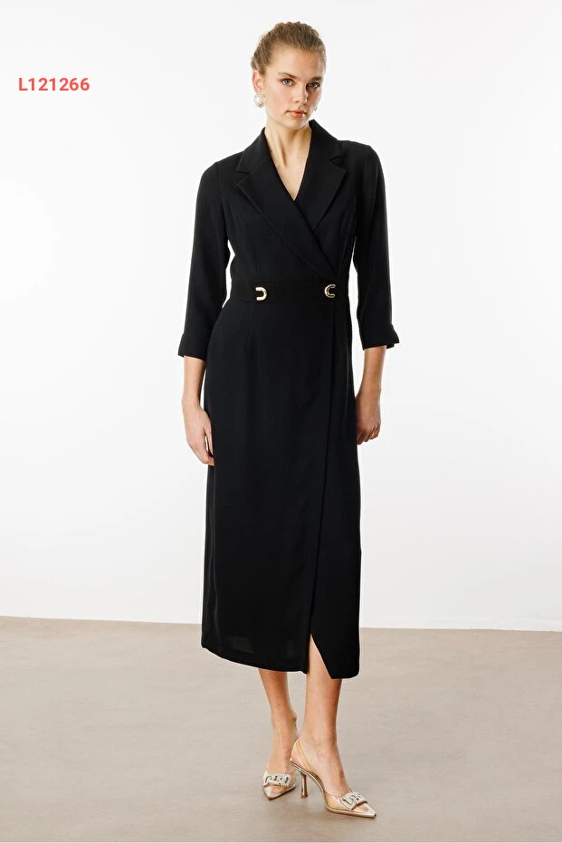 فستان كروزي بأكسسورات حزام للخصر وأ pockets باللون الأسود