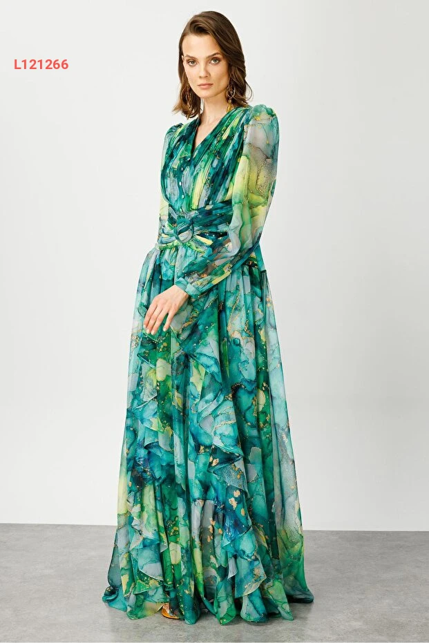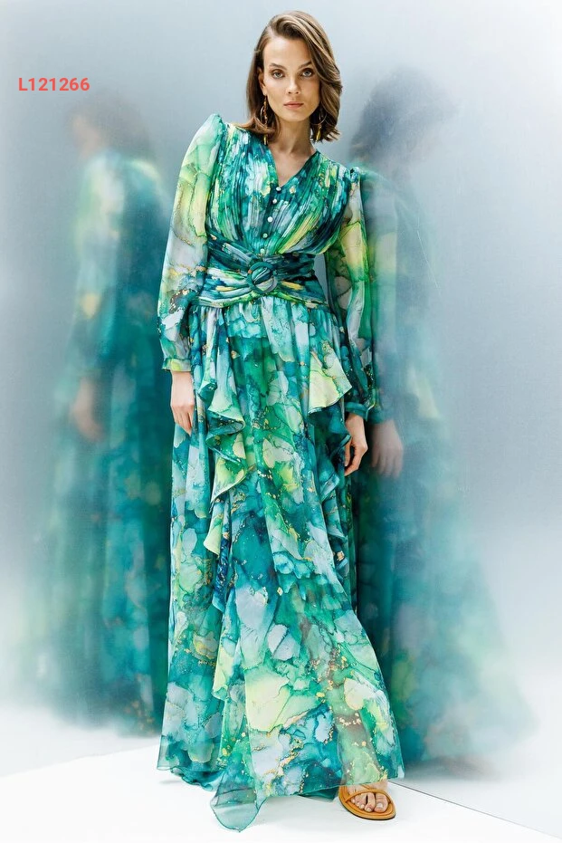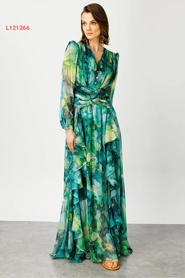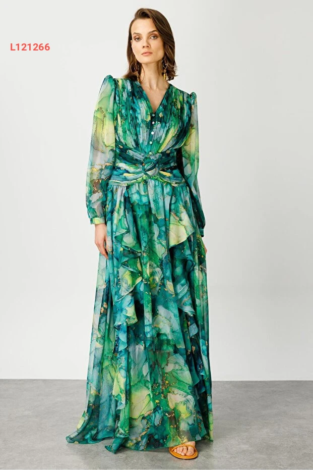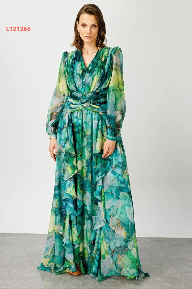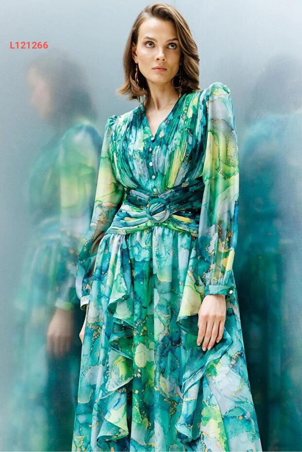 دللي نفسك بأناقة مع فستان Moda İlgi المميز بلونه الأخضر الجذاب! يتميز الفستان بتصميمه ذو الطيات والتفاصيل المنسدلة التي تضفي لمسة من الرقي والأنوثة، مما يجعله الخيار المثالي للمناسبات الخاصة أو الخروجات اليومية. اجعلي كل لحظة مميزة مع هذا الفستان الذي يضمن لك الراحة والجاذبية في كل إطلالة.