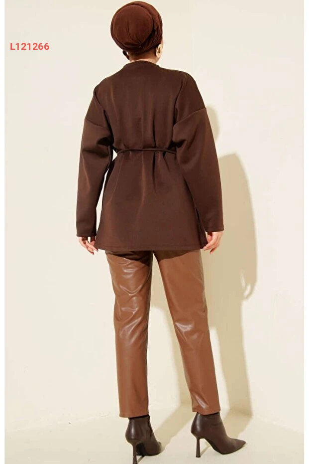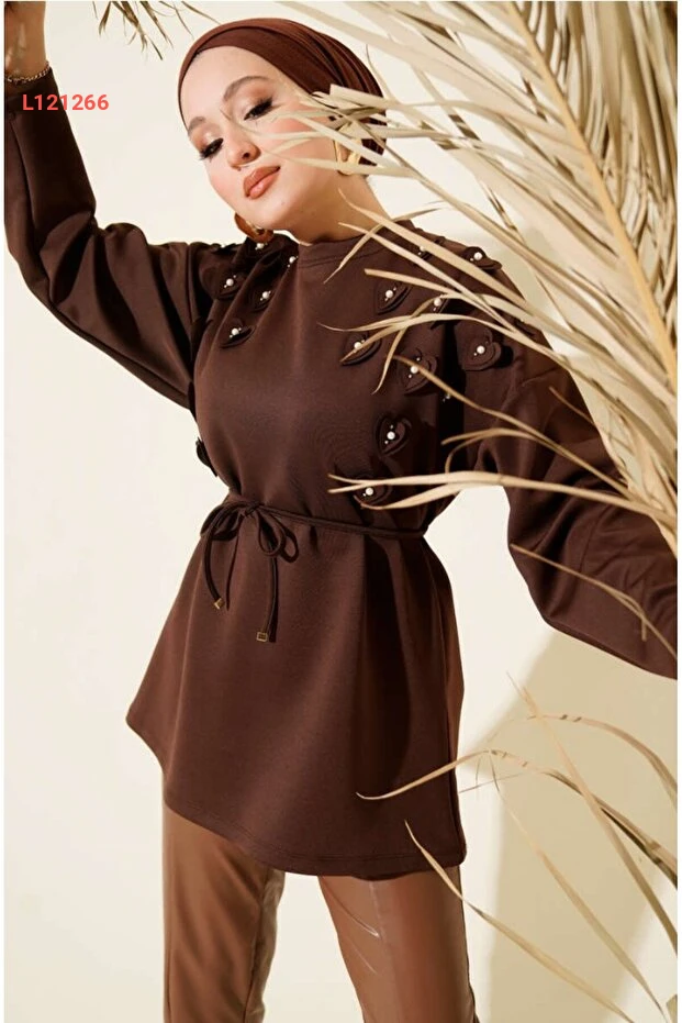 تونيك نسائي محتشم بأكتاف مميزة وحزام - تصميم عصري ومريح