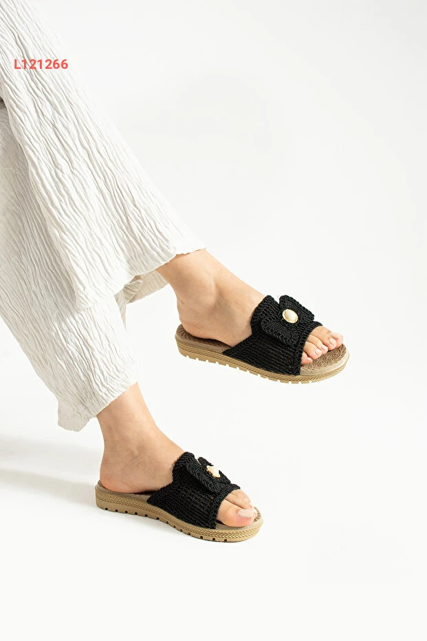 صندل خارجي وداخلي بدبوس دائري أسود بتصميم عصري