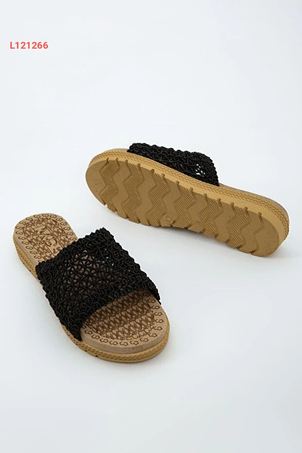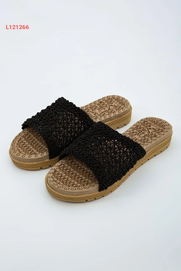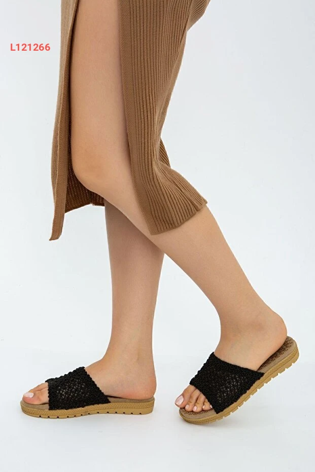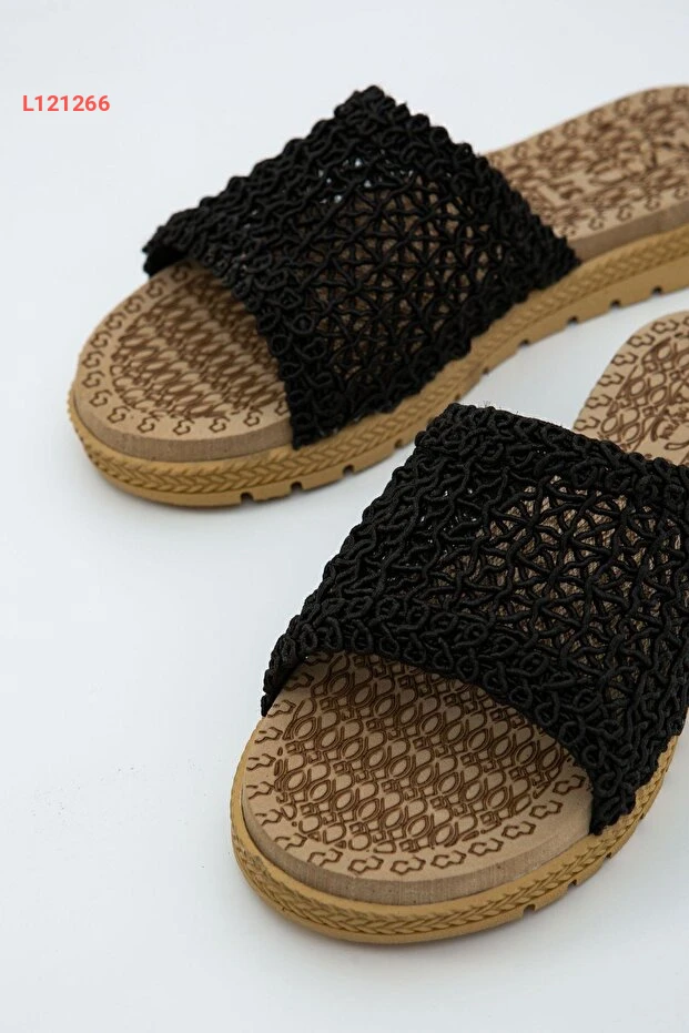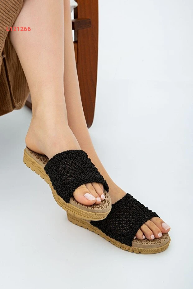 حذاء خارجي وداخلي مفتوح من الأمام بتصميم عصرية ونسيج خشن باللون الأسود