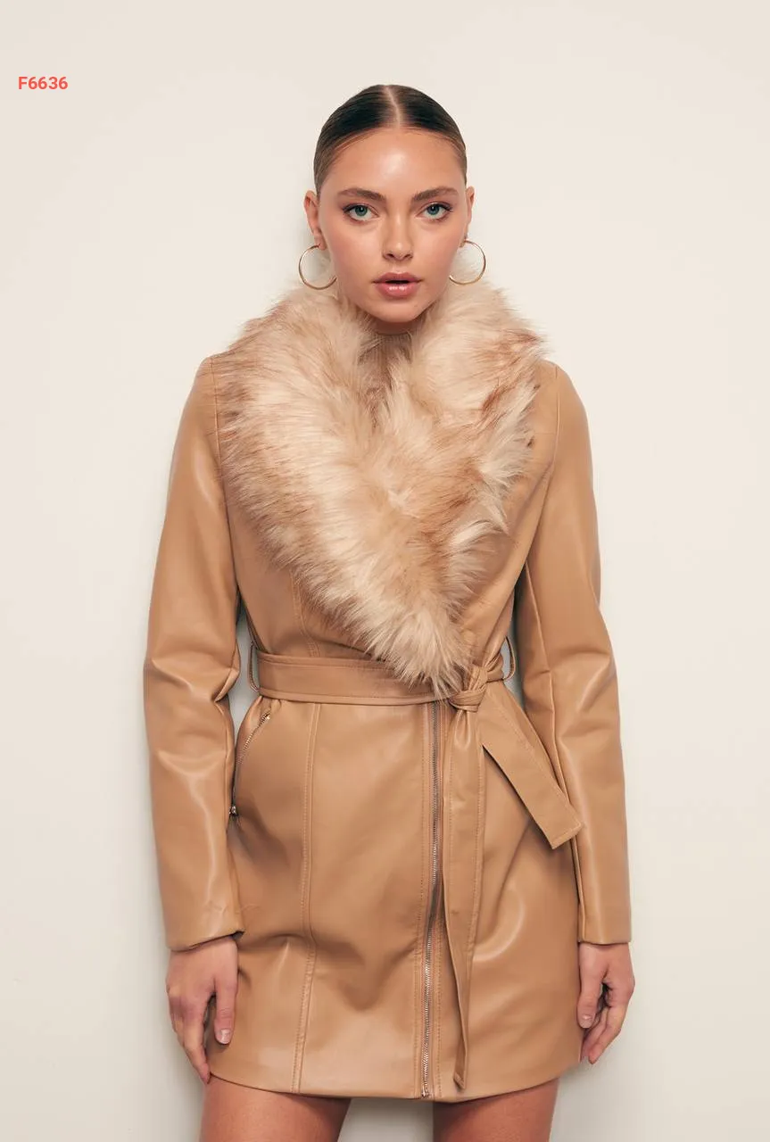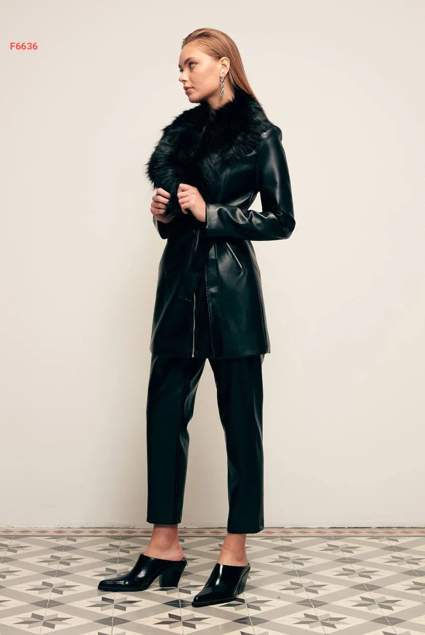 جاكيت جلد بياقة فرو