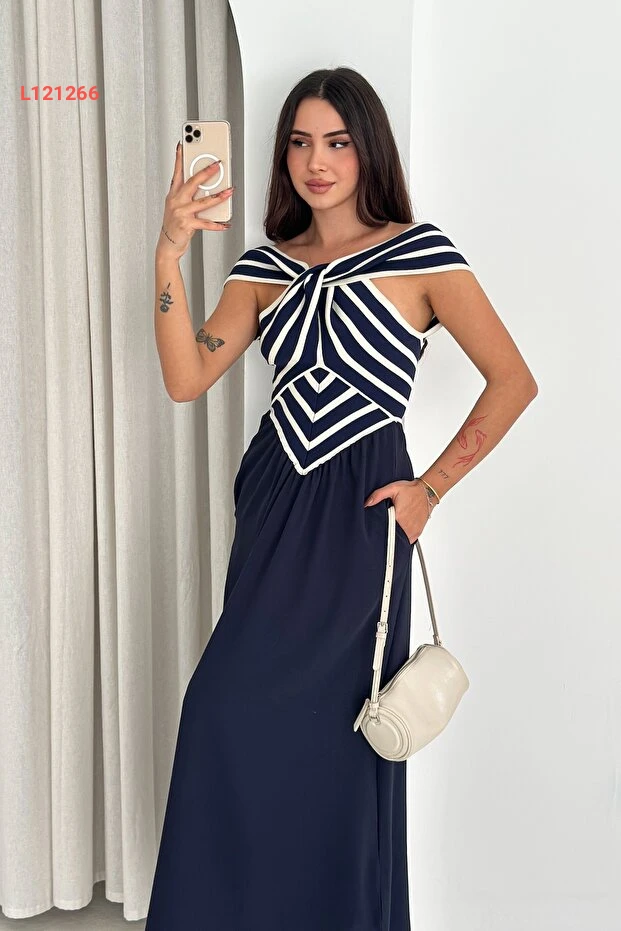استمتع بإطلالة أنيقة مع فستان FEMELLE المصنوع من قماش الكريب الفاخر، الذي يجمع بين الراحة والأناقة. بقصته الضيقة واللون الأزرق الداكن، سيفرض عليك هذا الفستان حضوراً مميزاً في أي مناسبة، سواء كانت يومية أو ليلية. احصلي على مظهر متكامل يجمع بين الأنوثة والجاذبية مع تصميمه العصري.