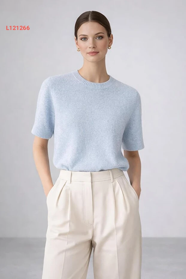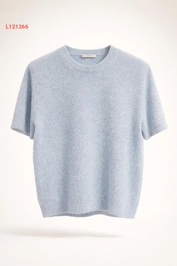 بلوزة تريكو قصيرة الأكمام من مزيج الصوف للنساء - فيراروا مافي