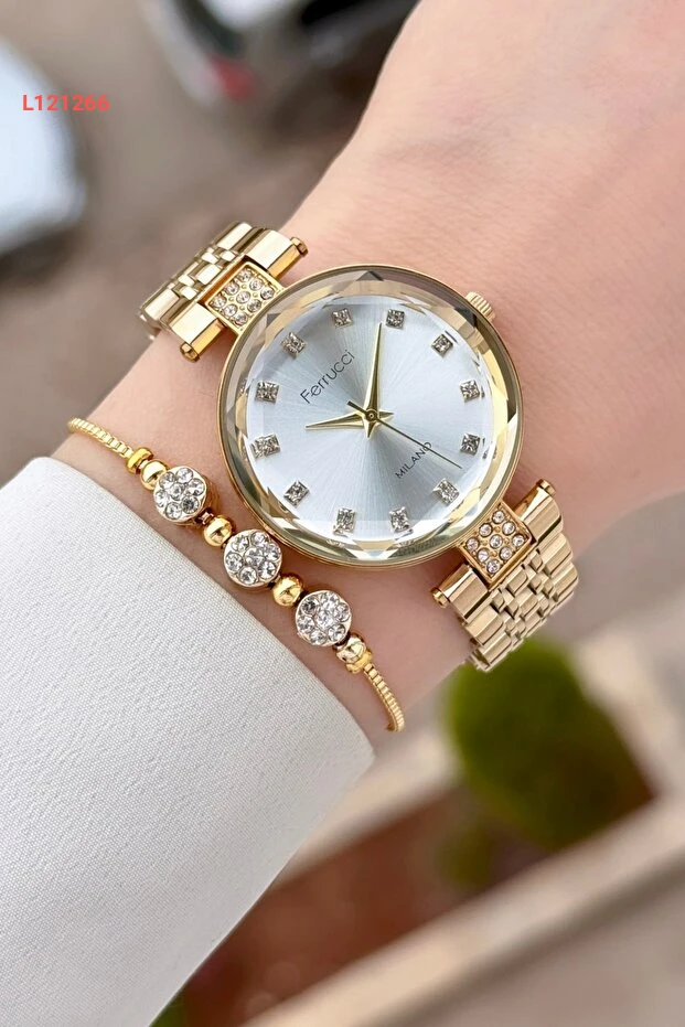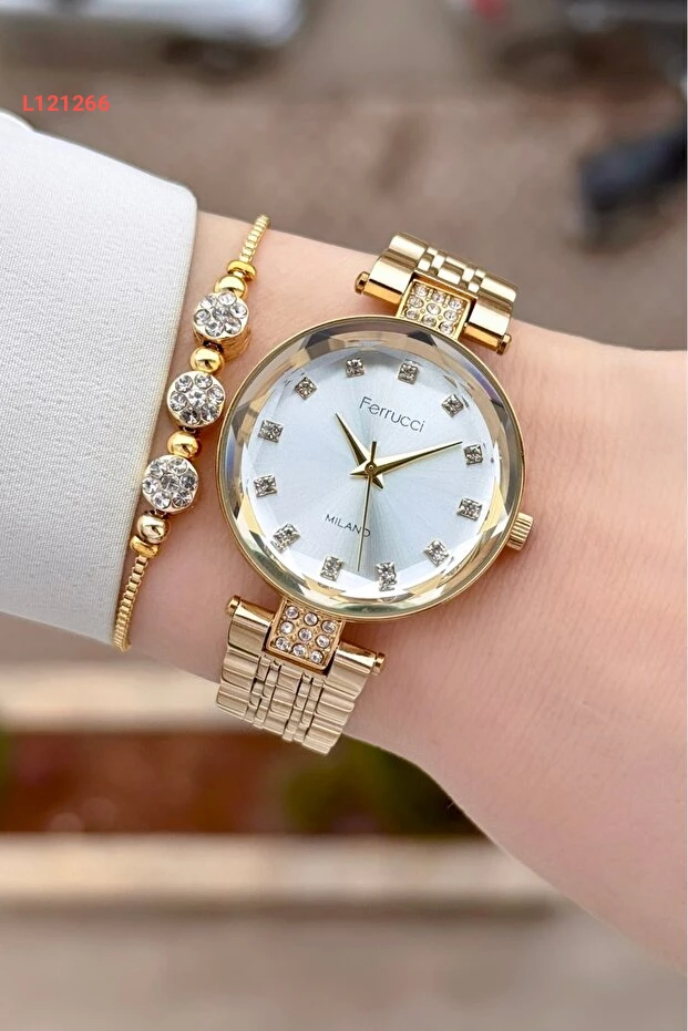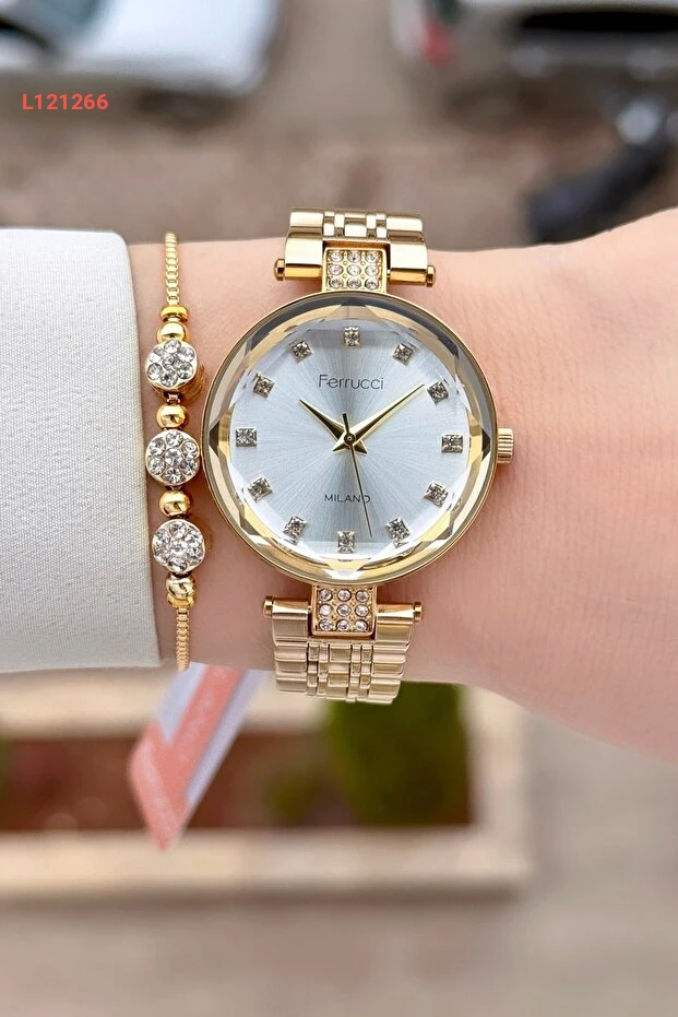 استمتعي بأناقة لا مثيل لها مع ساعة فيروتشي الذهبية للد女性، التي تأتي بتصميم عصري وأنيق بقطر 32 ملم. تجمع الساعة بين الوظيفة والجمال، حيث تتميز برباطها الجلدي المريح وبماساتها اللامعة، مما يجعلها الخيار المثالي لإكمال إطلالتك في كافة المناسبات. اجعلي كل لحظة استثنائية مع هذه التحفة الزمنية التي تضيف لمسة من الفخامة إلى معصمك.