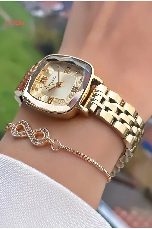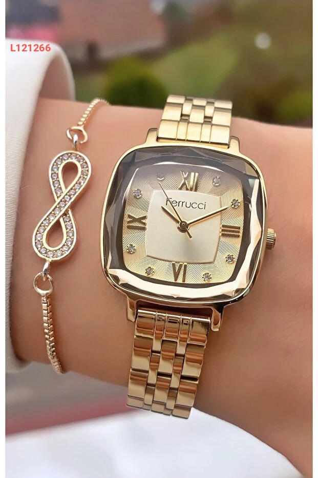 اكتشفي أناقة لا مثيل لها مع مجموعة ساعات فيروتشي النسائية، التي تضم ساعة مزينة بأحجار الريق اللامعة مع بليكيتي الممر المائي الفاخر. تأتي المجموعة في علبة هدايا خاصة، مما يجعلها هدية مثالية لكل مناسبة، حيث تضيف لمسة من الفخامة والجاذبية إلى إطلالتك. ارتديها لتسليط الضوء على أنوثتك وجاذبيتك في كل لحظة.