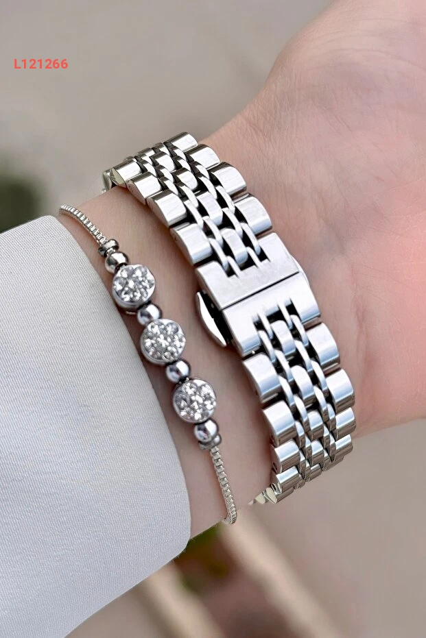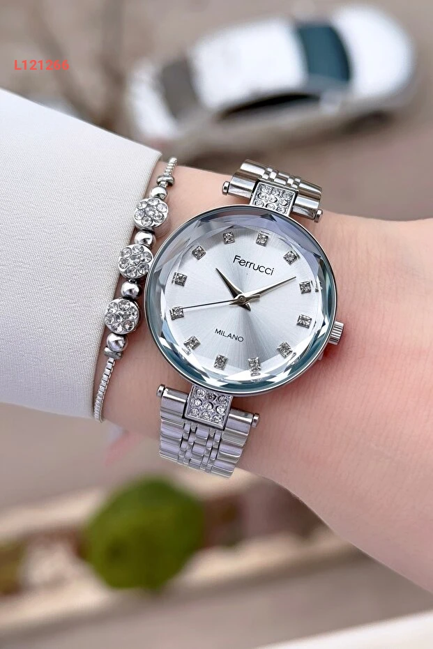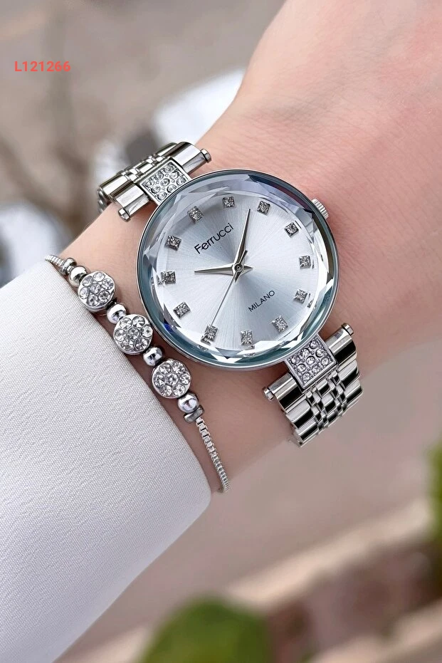 ساعة فيرروتشي النسائية باللون الفضي 32 مم مع سوار مميز