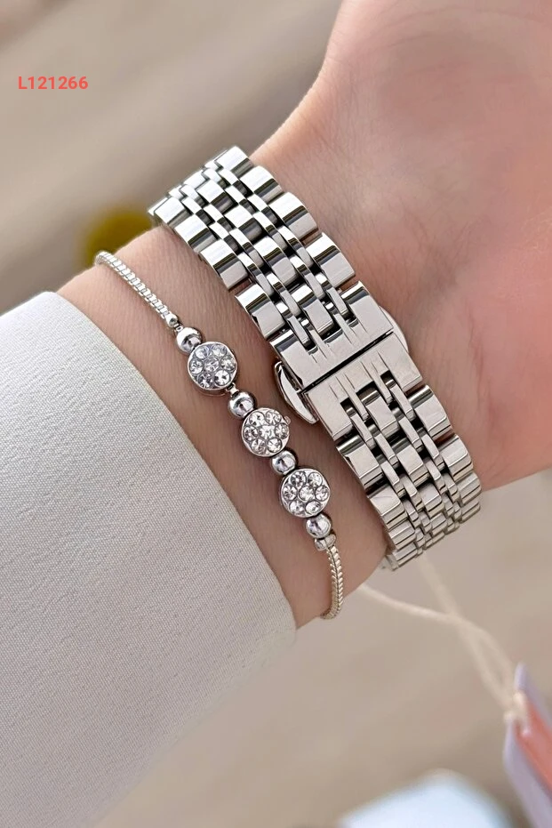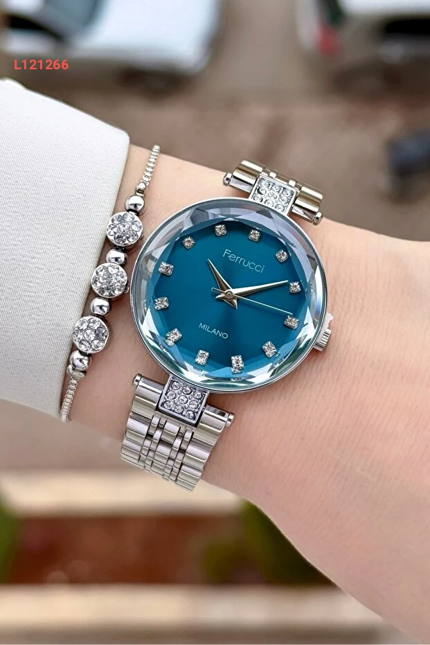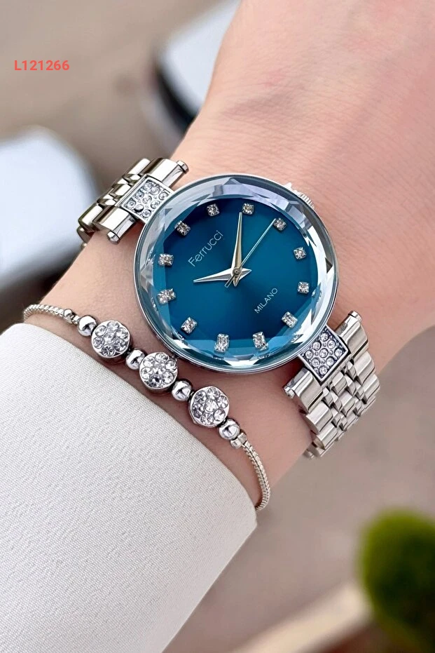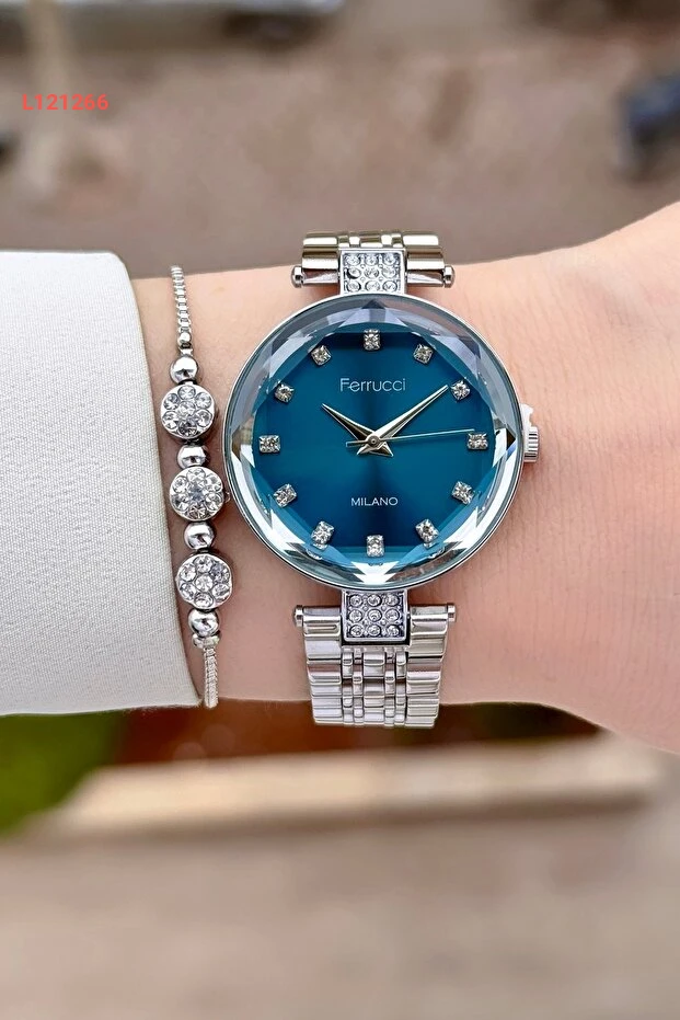 ساعة نسائية بفازة زرقاء وسوار فضي بقياس 32 مم من فيروتشي