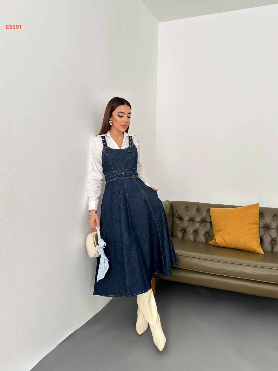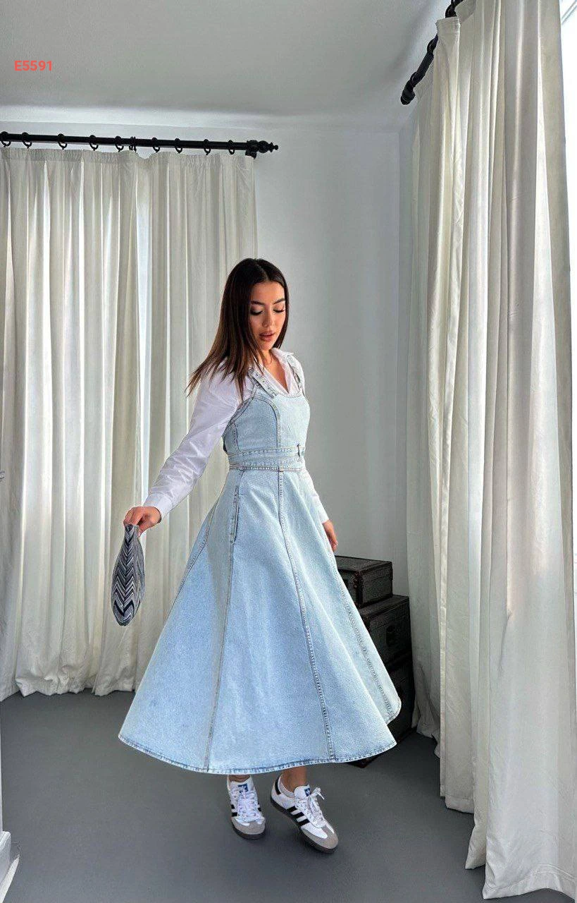 فستان جينز حفر كلوش